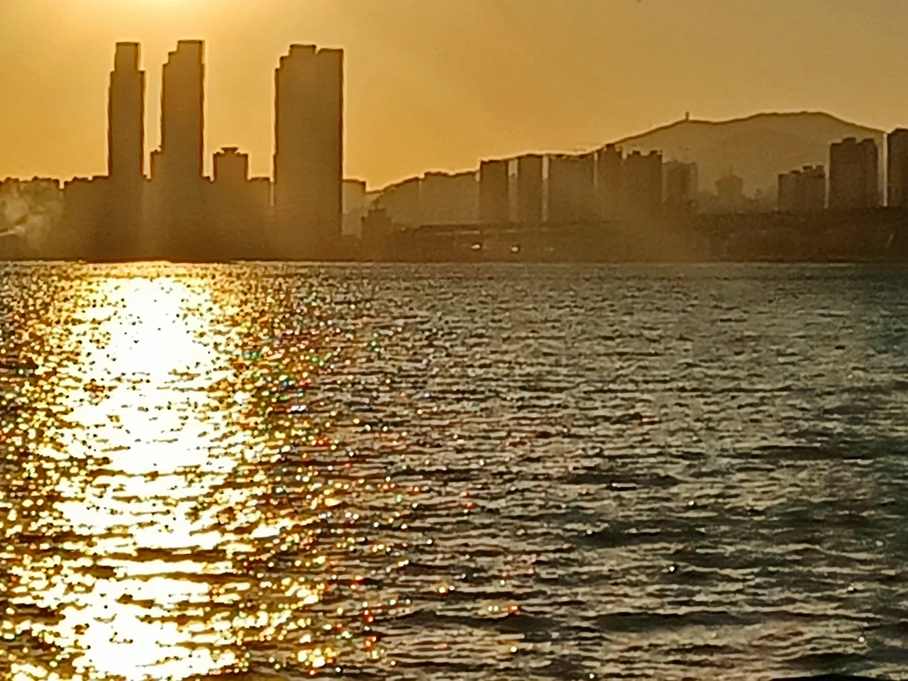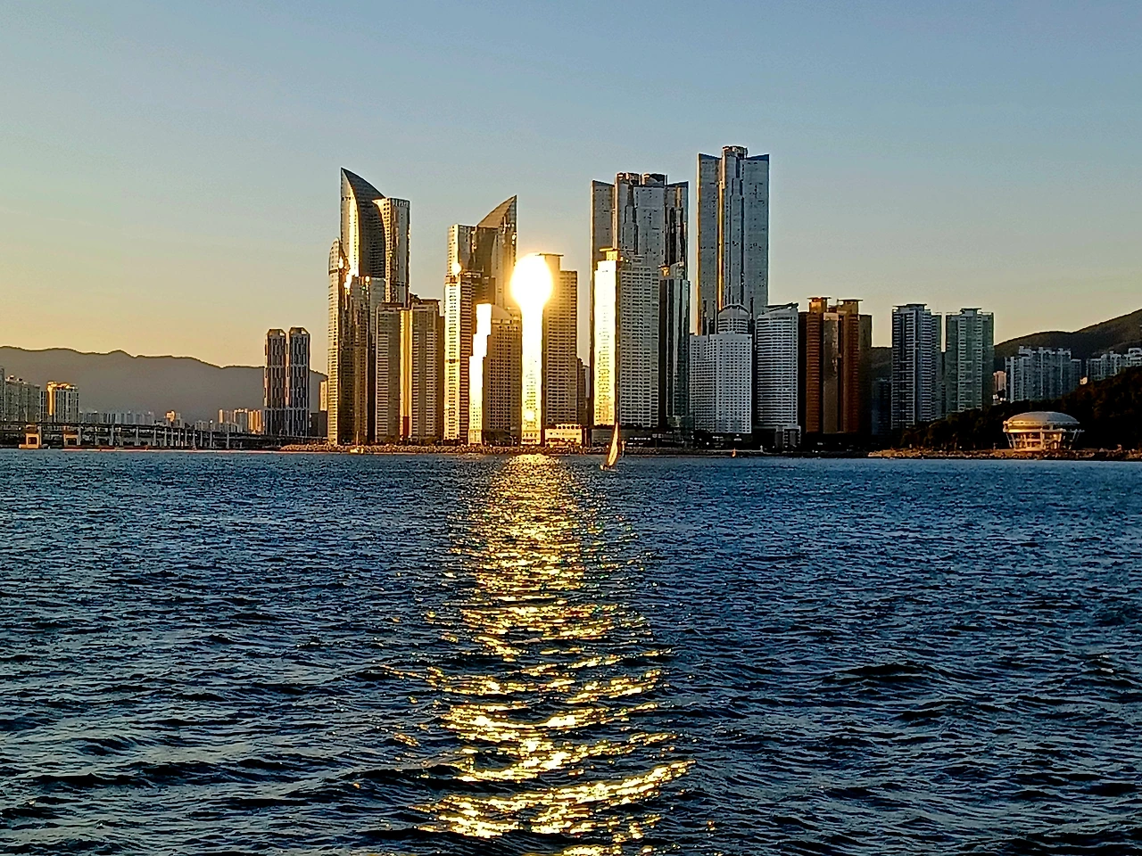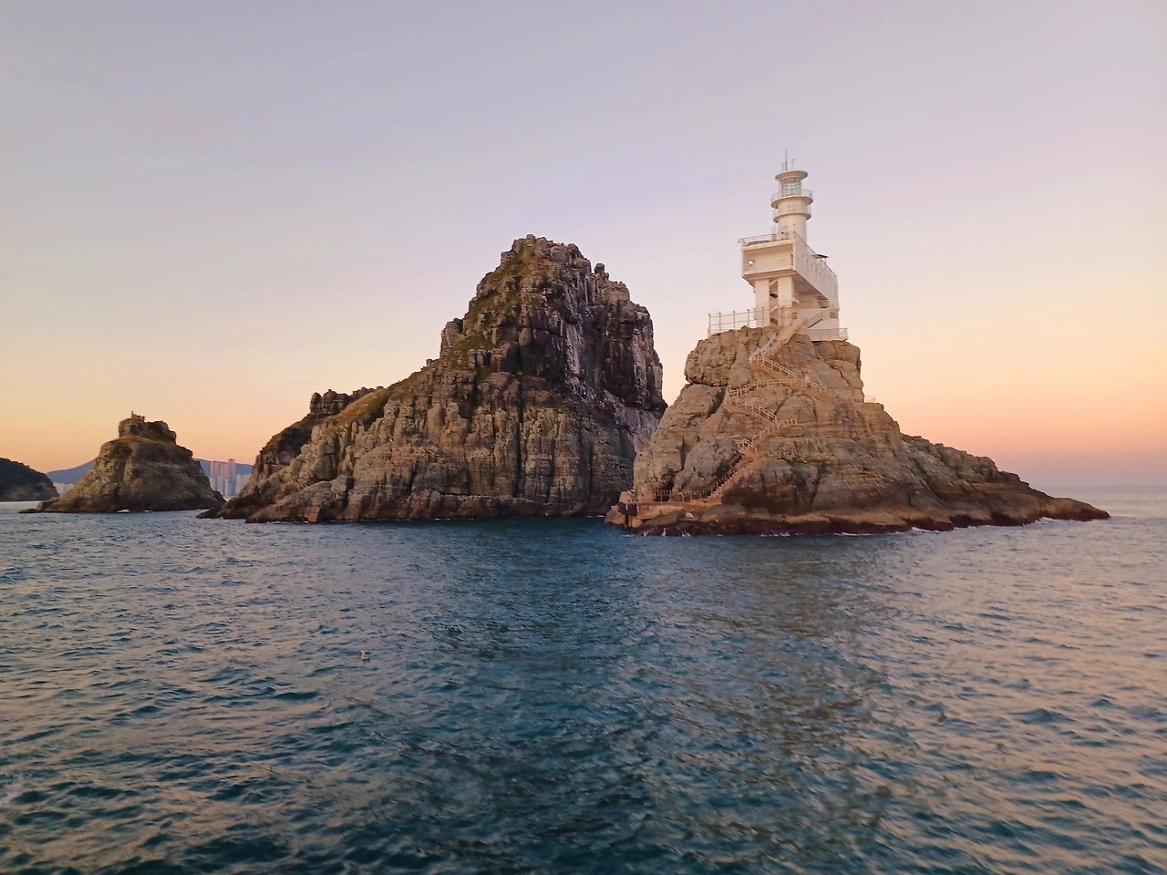 마침 석양 무렵이니 금빛 노을 어린 아름다운 오륙도를 볼 수가 있겠다.