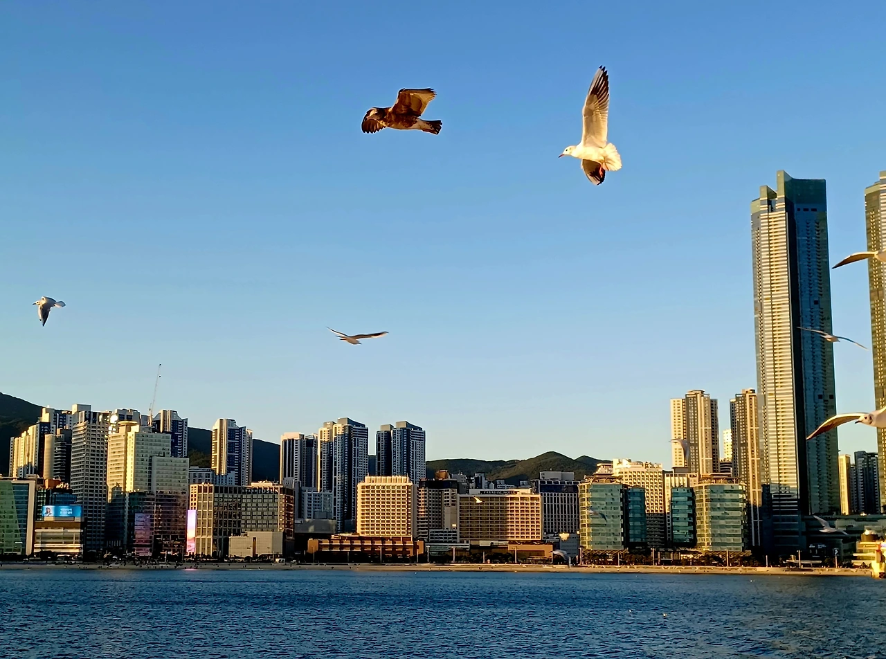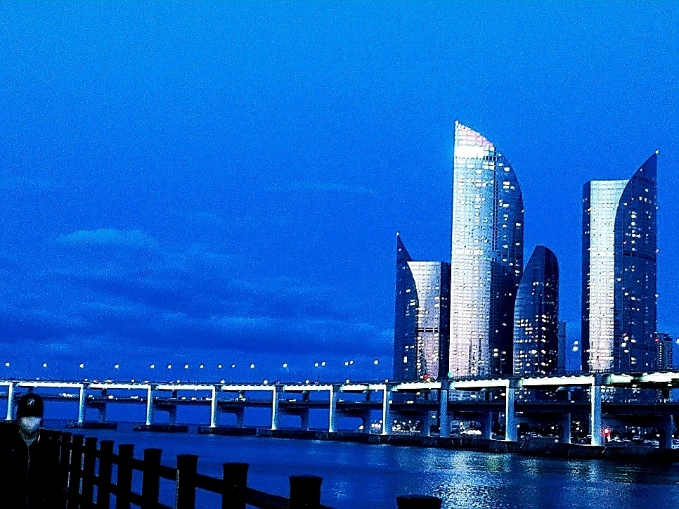 유난히 쾌청한 날씨 덕에 금빛 노을까지 덤으로 즐길 수 있었던 오륙도 해상투어를 마치고 우리는 광안리 민락수변공원으로 향했다.