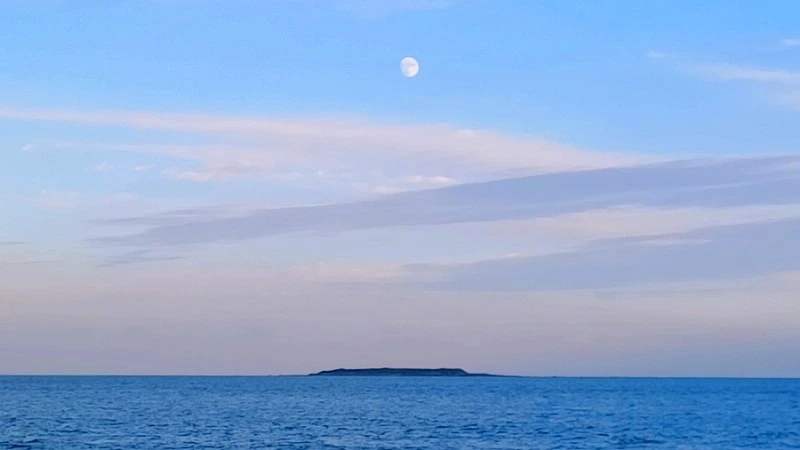 보목에서 차에 오르기 전, 끝으로 한 장 더 지귀도를 사진에 담았다. 때마침 만월에 가까운 달이 아직 푸른 중천에