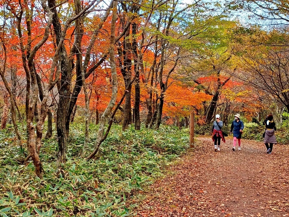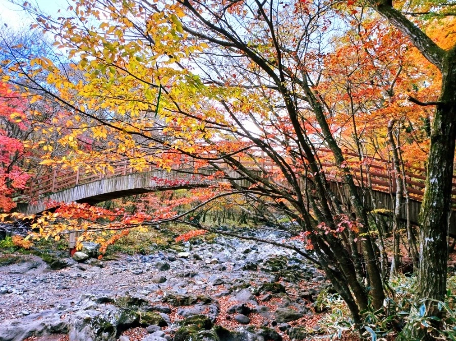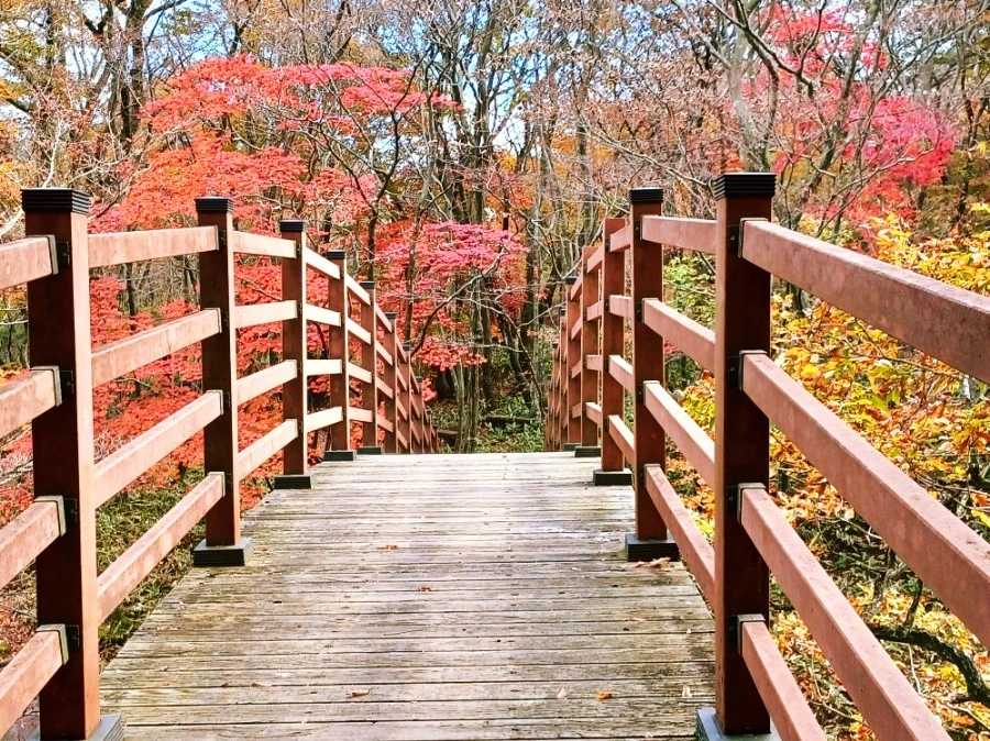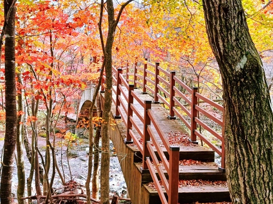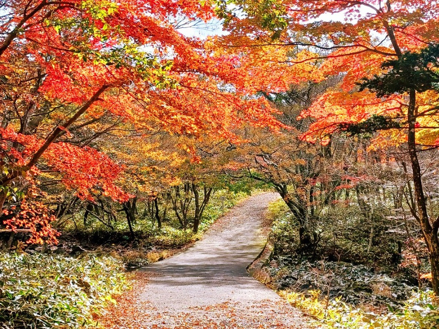 고도가 조금씩 높아질수록 붉은 단풍 한창이거나 더러는 낙엽 져 땅에 누웠는가 하면 청청한 해송과 삼나무 빼곡히 하늘을 가렸다.