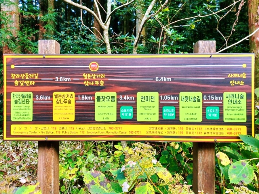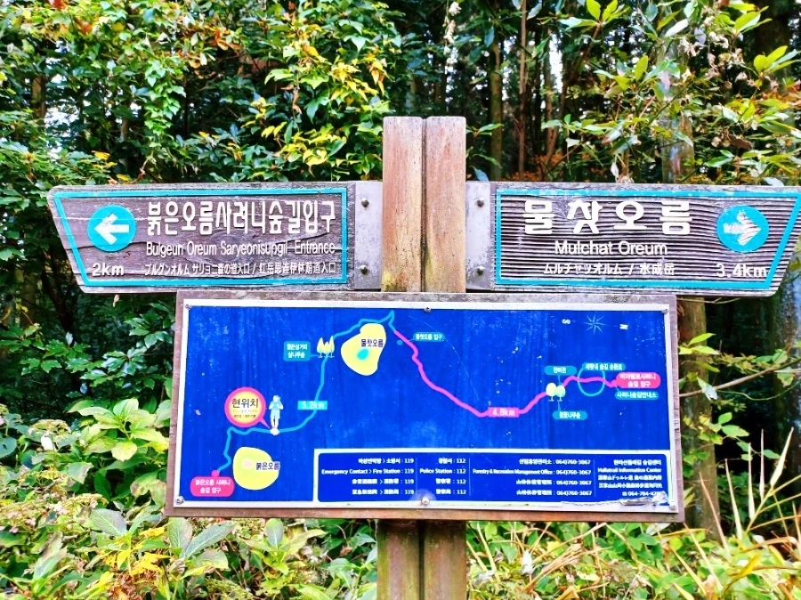 한라산 언저리에 있는 수많은 오름 중 하나인 붉은오름은 휴양림 숲으로 초입 나무들은 아직 푸른 기운이 남아있다.