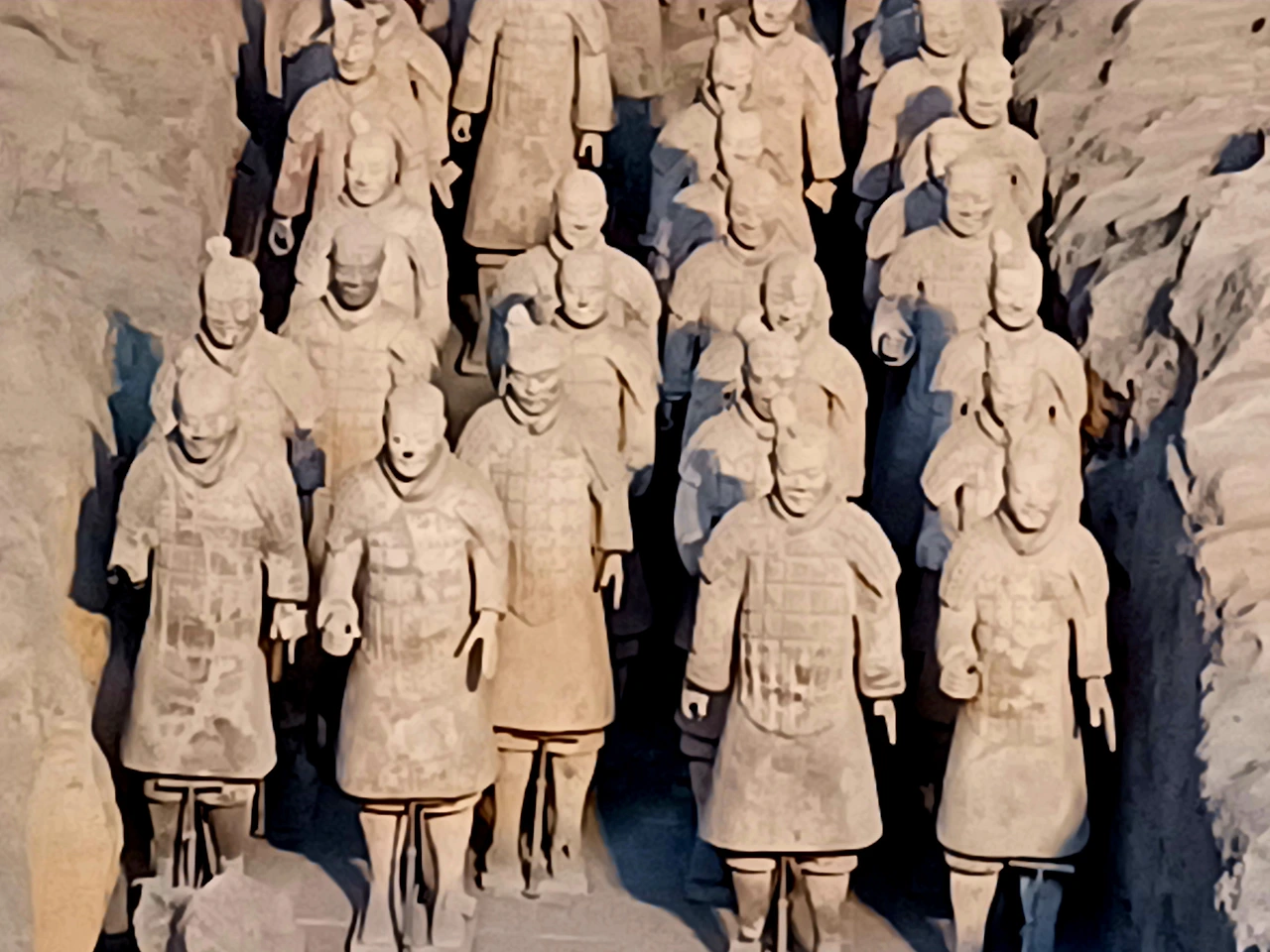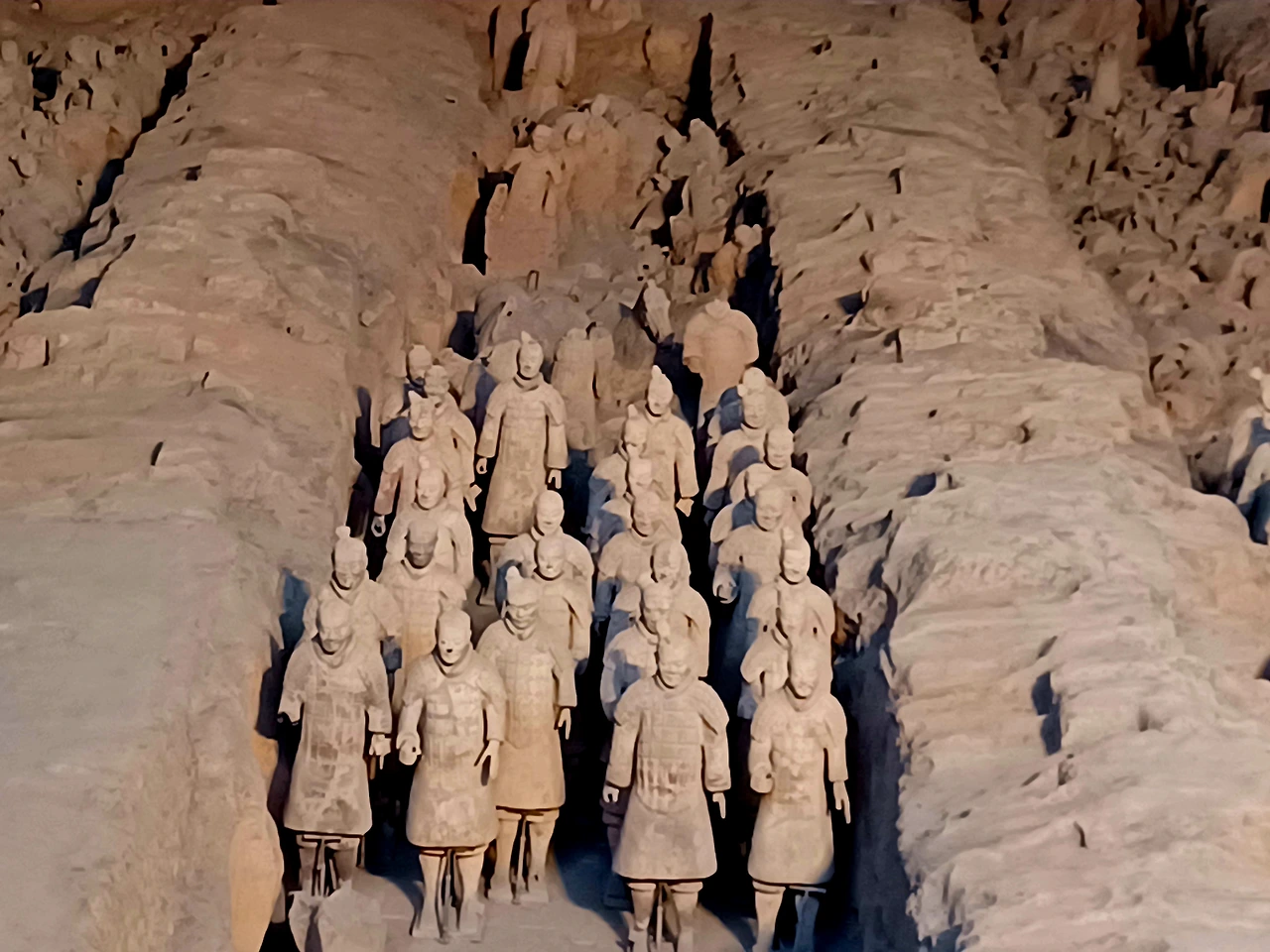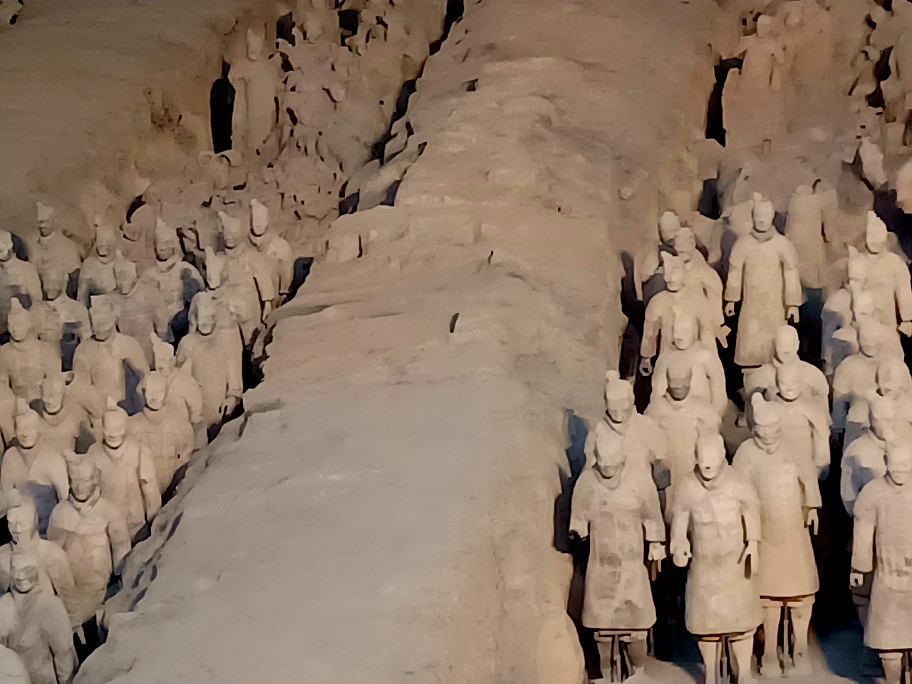 진시황릉에서 동쪽으로 무려 1.5km나 떨어진 병마용갱에 묻힌 헤아릴 수 없이 많은 토용들은 진시황이 자신의 무덤을 보호하기 위해 만든 등신대 토용 군대다.