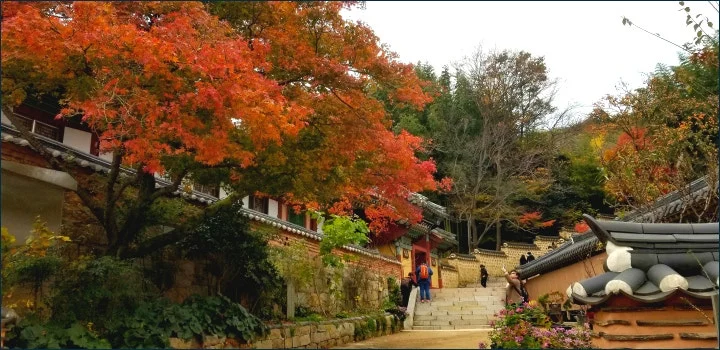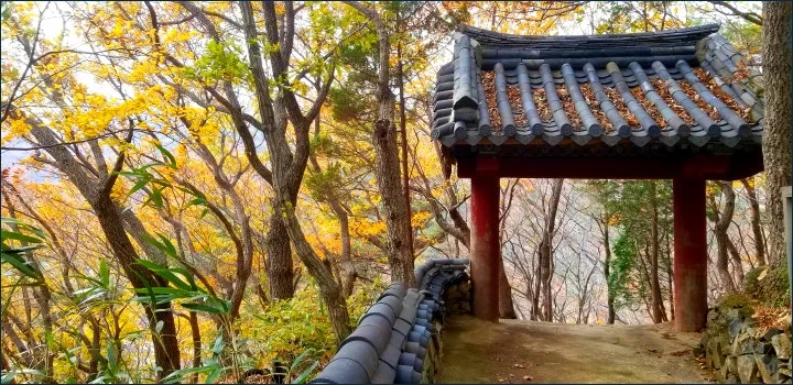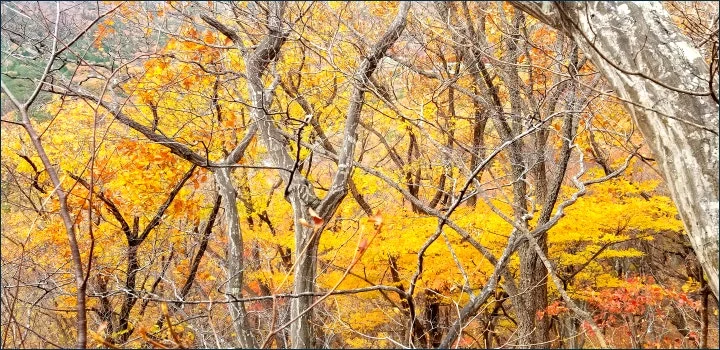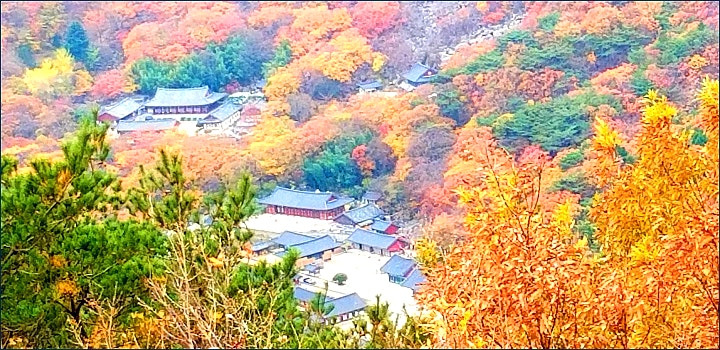 내일 혹시 일기 청명하면 다시 범어사를 찾아 푸른 창공이 받쳐주는 눈부신 단풍 사진을 찍어봐야겠다는 욕심이 발동했다. 다음날, 아침부터 날씨는 기막히게 좋았다. 전형적인 가을 하늘이 푸르게 펼쳐져 나를 자꾸만 꼬드겨댔다. 나갈까? 말까? 거의 그 유혹에 넘어갈뻔하다가 '과부하'란 단어가 뱅뱅 맴돌아 아서라 참자, 결국 스스로를 주저앉혔다. 무리했다가 크게 놀란 적이 있다 보니 아직은 근신 모드 해제하기엔 시기상조라 여겨졌다. 건강을 잃으면 다 잃는 건데 지난번 한번 된통 혼나봤으니 절대 무리하지 말고 기온도 떨어졌는데 단디 조심 또 조심. 만사 삼가고 조신하게 집에 들앉아 어제 사진으로 오감만족이었던 통도사의 만추 소식 띄운다.