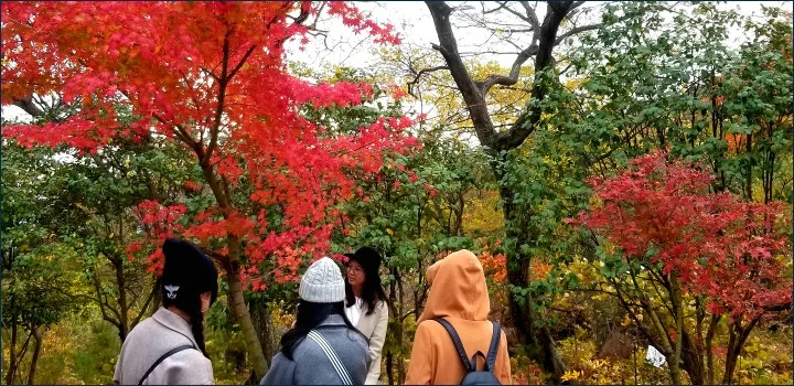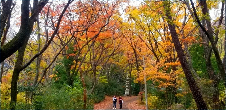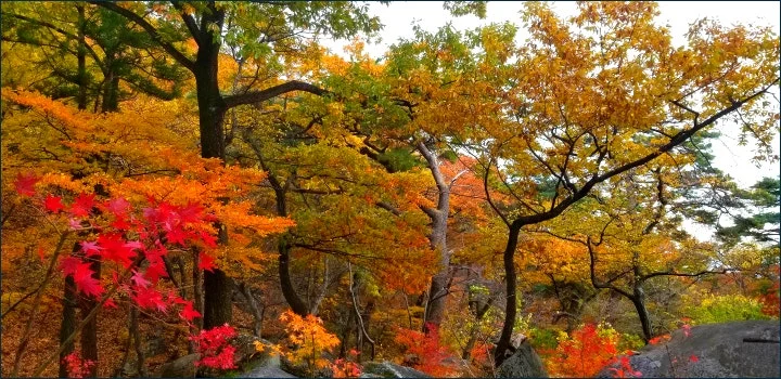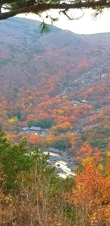 사진 하는 친구가 범어사라며 카톡을 보내왔다. 절정인 단풍이 화려 찬란했다. 서둘렀지만 정오 가까이 돼서야 범어사에 닿았다. 눈앞에 펼쳐진 숲은 온통 불그레 환했다. 아침나절 창창하던 하늘인데 서서히 회색 구름이 진을 치며 날씨가 우중충해졌다. 범어사 전경이 마주 보이는 계명봉으로 향했다. 꽤 높아 보이는 계명봉이나 조붓한 비탈길 걸으면서 이런저런 뭇 사념에 잠기기 딱 좋은 코스라 평소 즐겨 찾곤 한 곳이다. 써둔 지 오래된(1992) 계명봉에 관한 글을 꺼내본다.