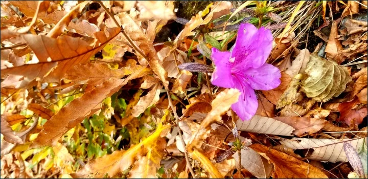 <계명봉 오르다 조우한, 낙엽 더미 틈에 한 송이 화사히 핀 철쭉꽃 >