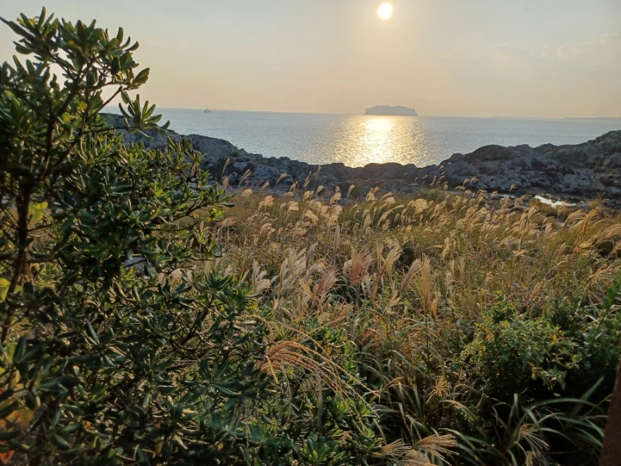 해풍에 나부끼는 억새길이 이어지다가 원시림 닮은 으슥한 숲길이 나타나기도 하고 용암 덩어리 새새로 물이 고인 웅덩이도 보였다.