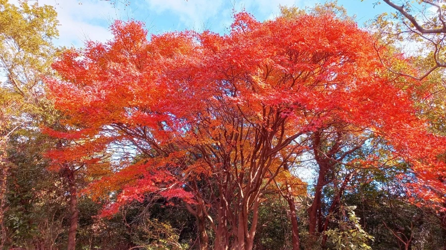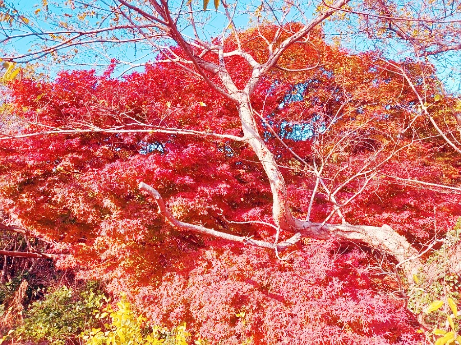 하늘 짙푸른 날, 대비도 선명하게 적 단풍나무 붉나무 빨갛게 불타고요.