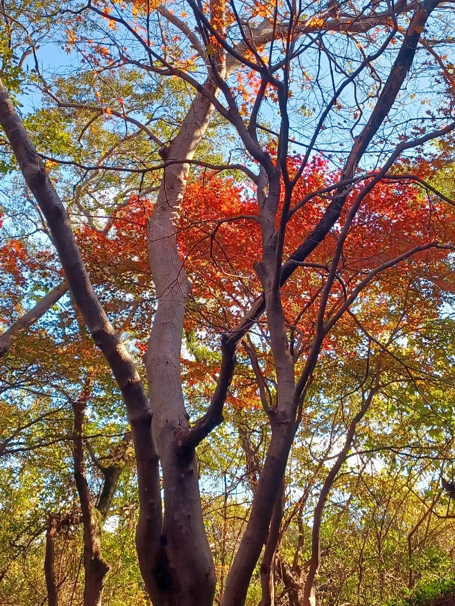 다음 주에 가면 색채 칙칙하게 퇴색해 있거나 이파리 떨어져 나무 허술해졌을지도 모르겠네요.