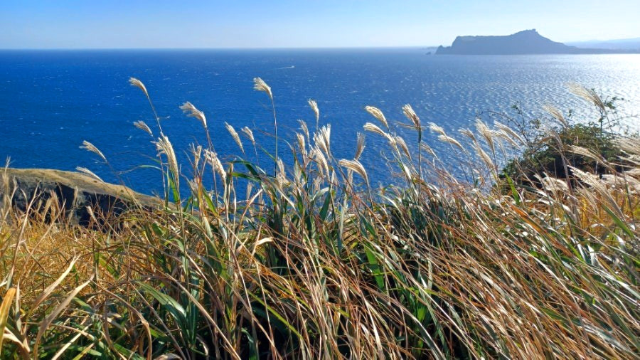 해풍이 굉장히 심하게 불어 체중 하나 감당키 어려운만치, 억새 역시 죄다 꺾일 듯 휘어져 누웠다.