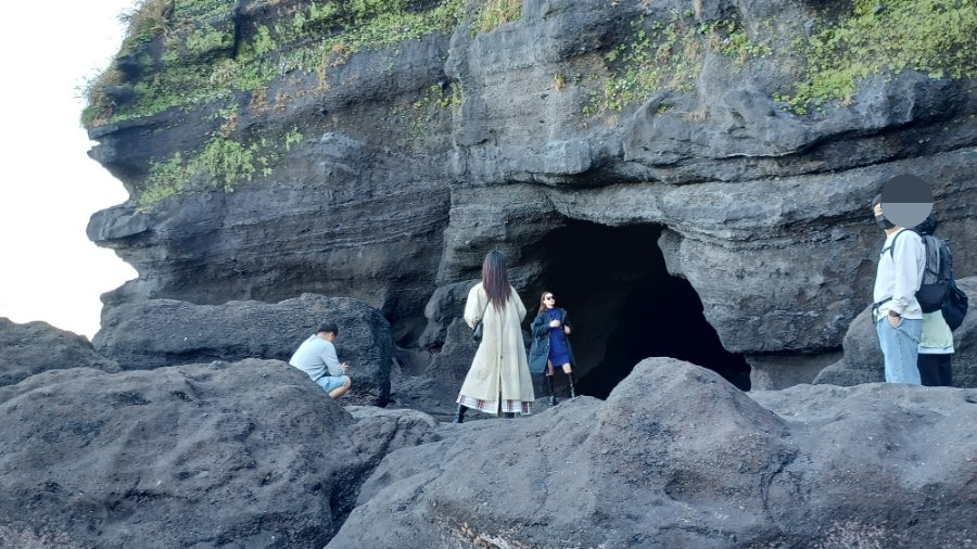 만조 때는 물에 잠기는 곳인 듯 굴 안쪽은 젖어있었으며 바위가 미끄럽기에 입구에서 사진만 찍고 얼른 나왔다.
