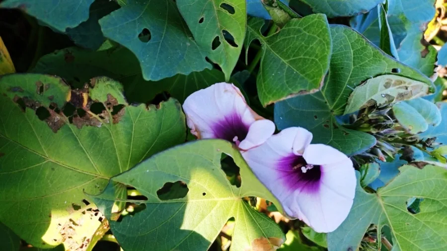 밭에는 그래도 고구마꽃이 피어있었다.