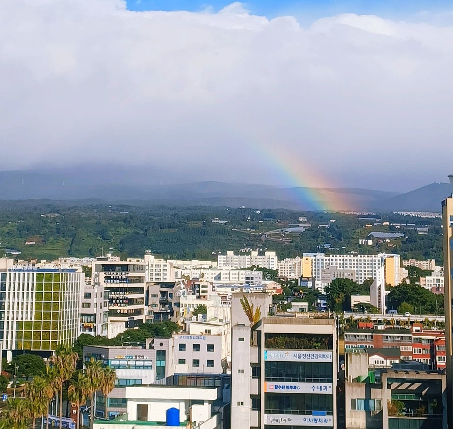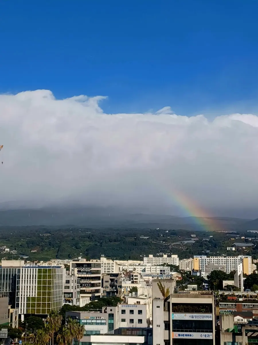 그 한라산 영실 쪽에 무지개도 걸려있다.
