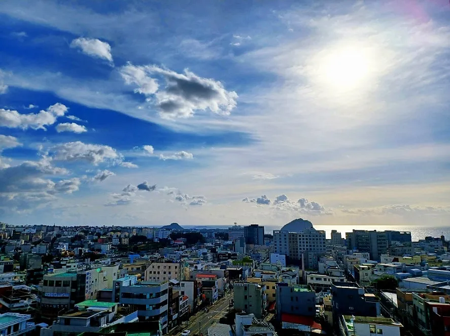 아직 한라산 언저리는 운무에 가려져 보이지 않는다.