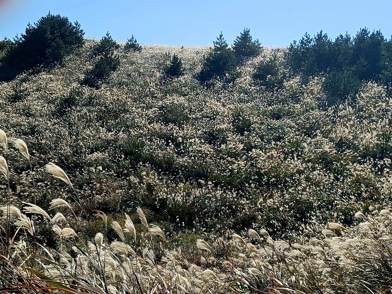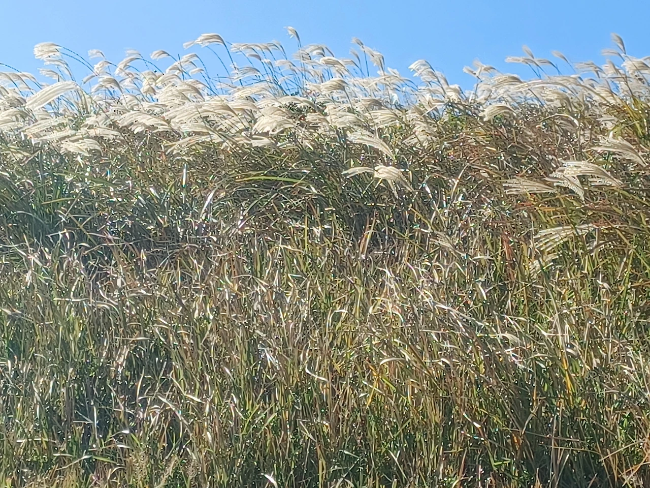 빛이 너무 강한 한낮에는 사진찍기보다 실물을 즐기며 최대한 바람소리 들으면서 억새 춤사위 즐길 것.