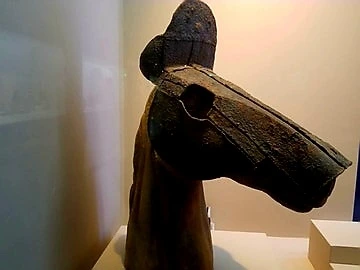 복천동 고분에서 발굴된 마두 보호구인 철제 투구와 오리모양 도기로, 부장품에 새 모양 그릇이 많음은 새를 곧 이승과 저승을 잇는 중개역으로 파악한 듯.