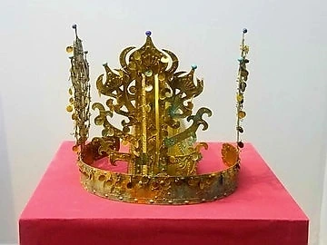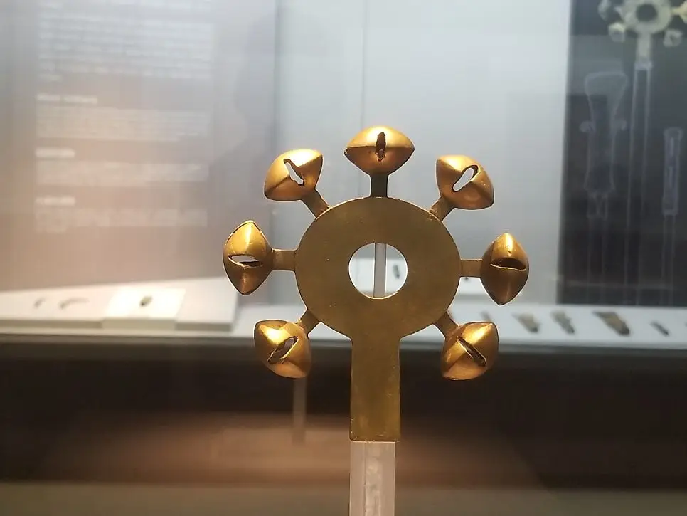 복천동 22호 분 출토품인 청동제 칠두령, 일곱 개의 방울이 달린 가지 방울. 칠두령(七頭鈴)은 가야의 최고 수장급이 사용한 것으로 보이는 바, 이 방울을 손에 들고 흔들면서 의식을 주재했을 터이니 권력 지배자가 종교의식까지 주관했음을 알 수 있다.