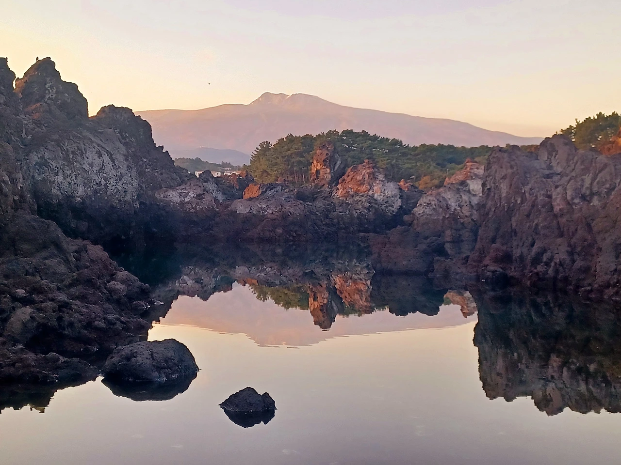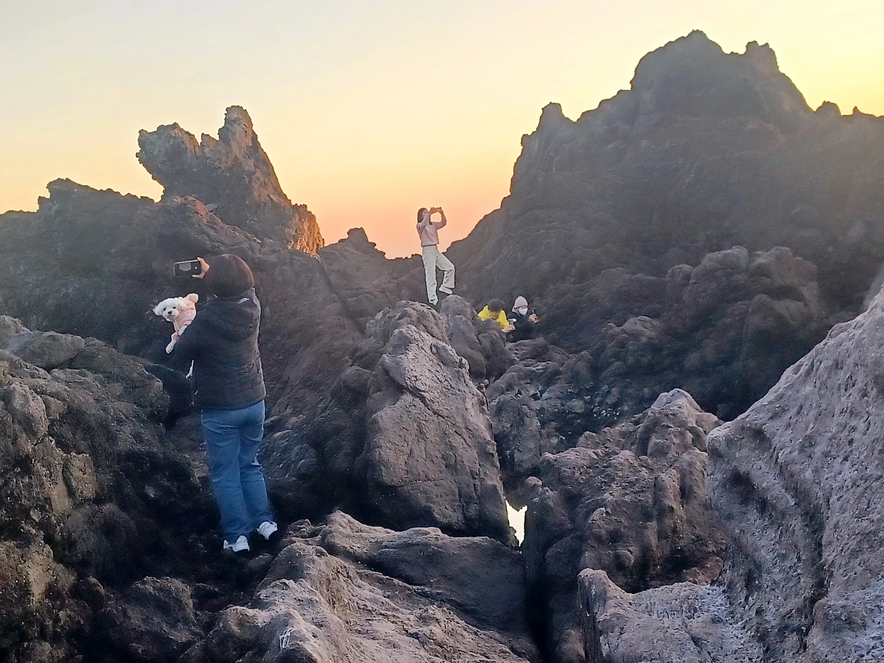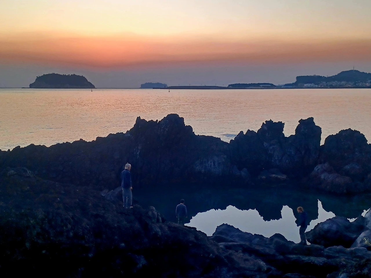 그간 외돌개에서만 노을을 즐겼던 터, 서귀포를 따스히 감싸며 스며드는 일몰 풍경을 소천지에서 느껴보고자 해서였다.