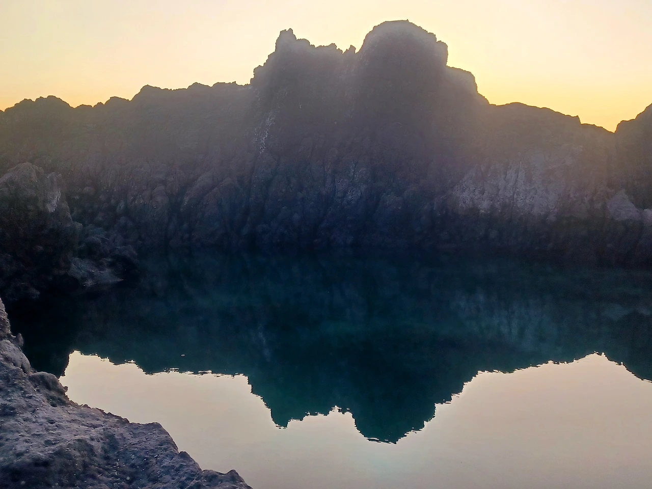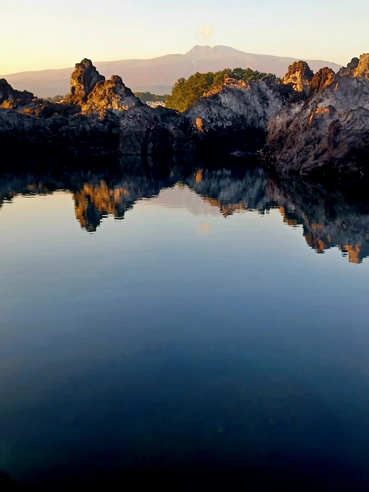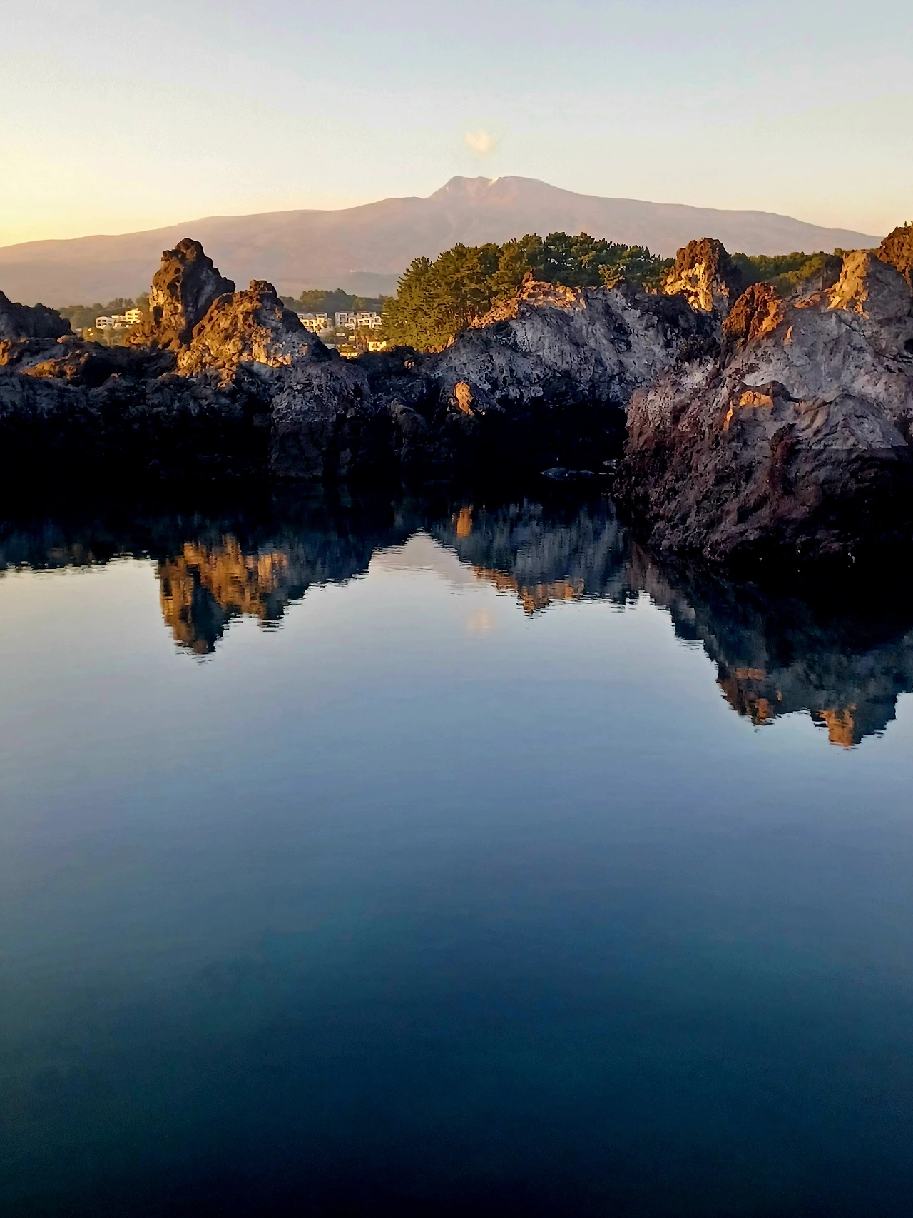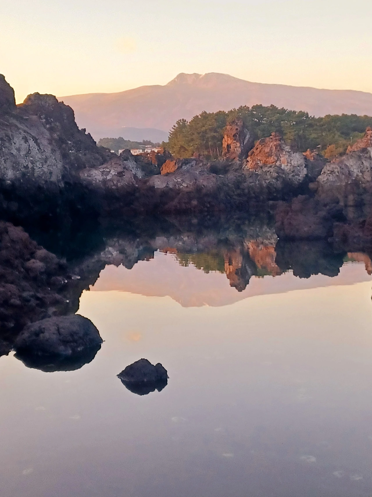 청년이 알려준 포인트에 낮게 앉아 등을 뒤로 젖히자 오 마이갓, 소천지에 그대로 잠긴 한라산이 보였다.