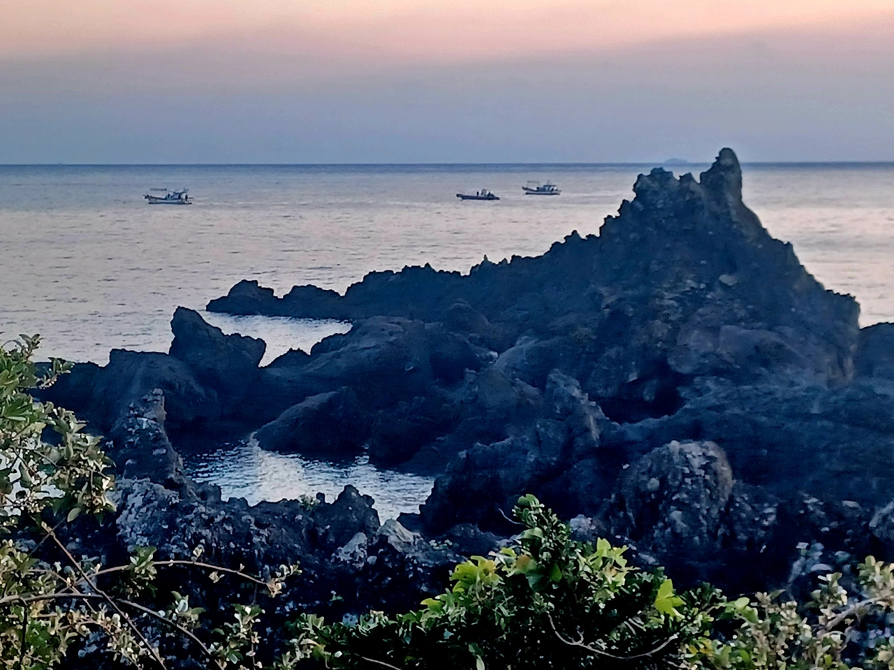 문섬 범섬 새섬이 정겨이 노을 진 서귀포 앞바다에 떠있었다.