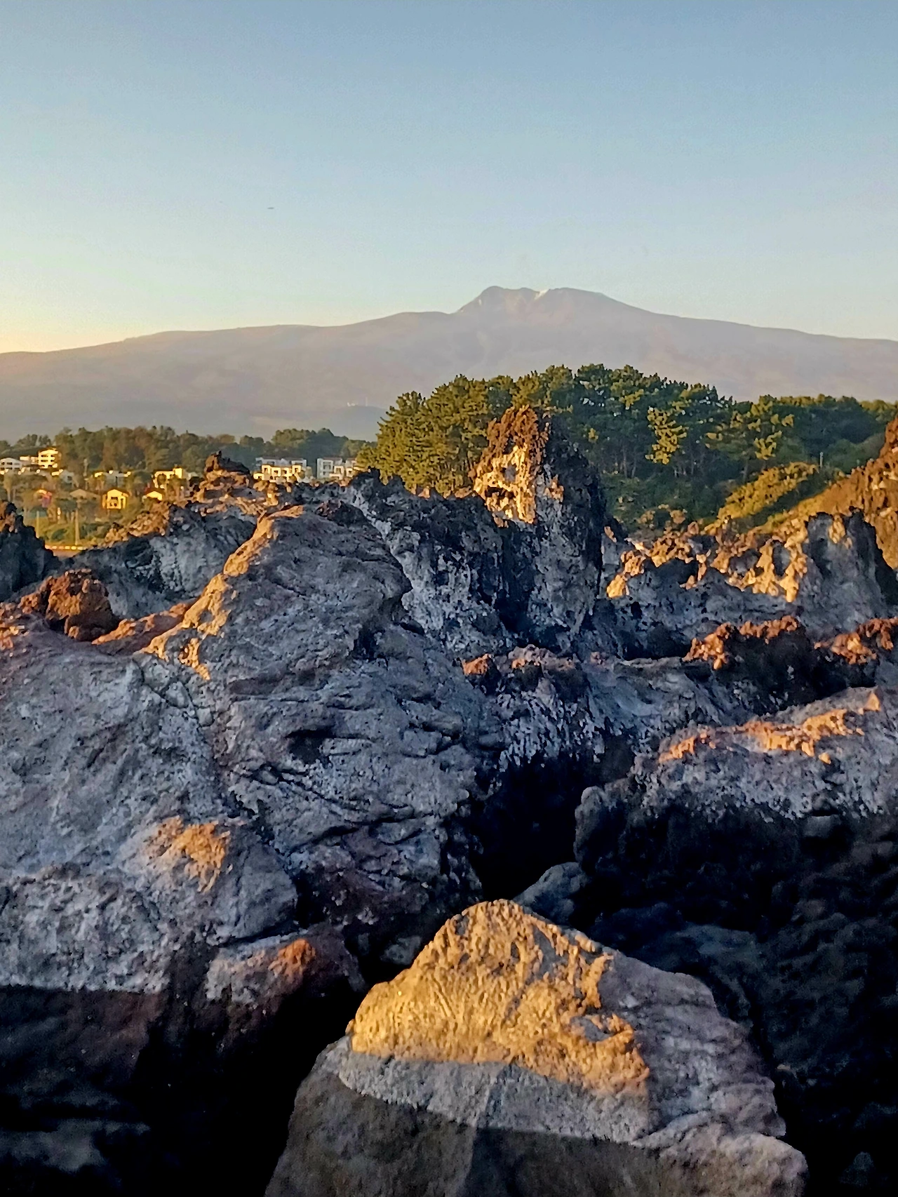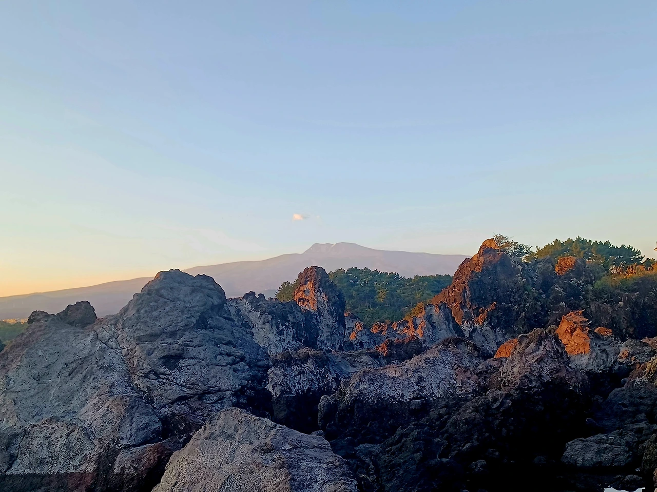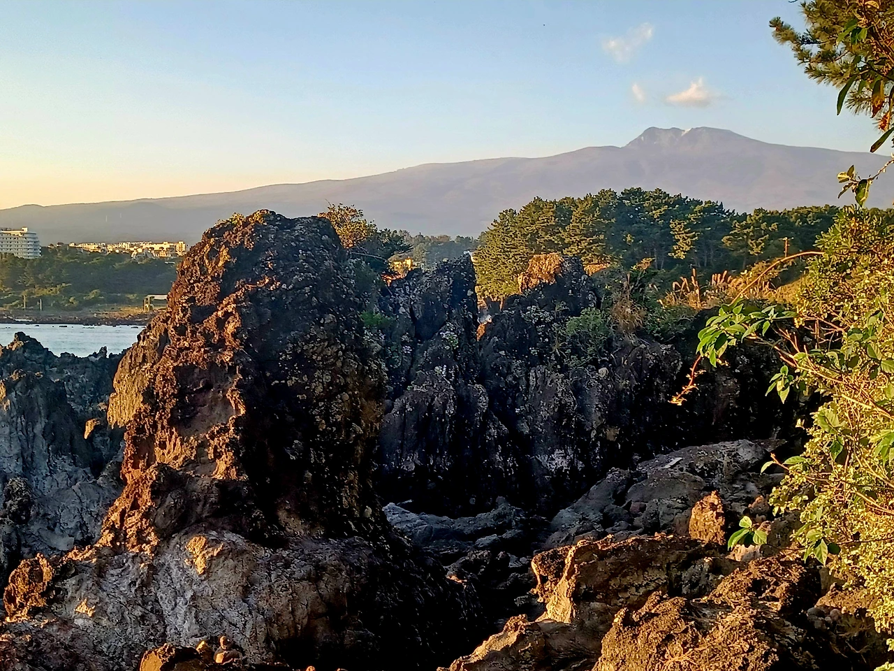 앞에서만 얼쩡거리며 한라산과 노을 배경으로 한 바위 무더기들 거푸거푸 사진에 담았다.
