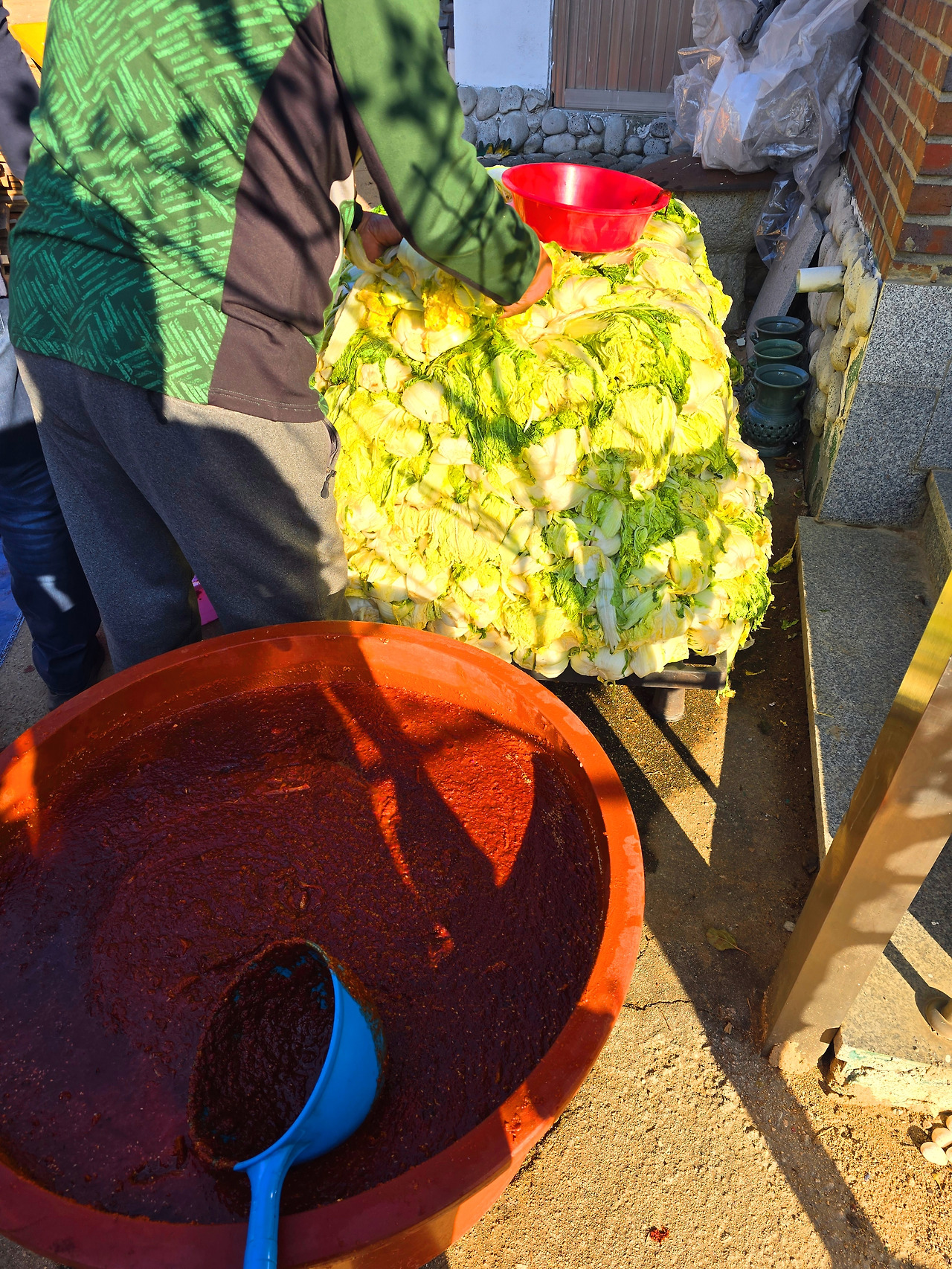 아마도 김해 집성촌인 듯 사돈 부모님 댁에서 3대가 모여 김장을 하는 수준이 아니라, 씨족공동사회에 그 뿌리를 둔 두레처럼 김장도 마을단위로 협업을?