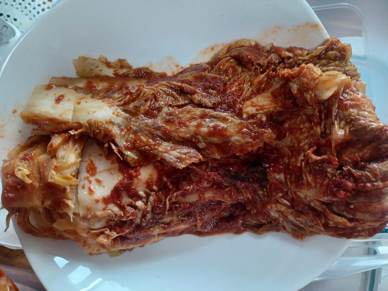 김장김치(얌전스레 겉잎으로 잘 덮은 거 제치고) 한 포기 꺼내서 머리 부분만 자르고 손으로 죽죽 찢어 먹었거든유.