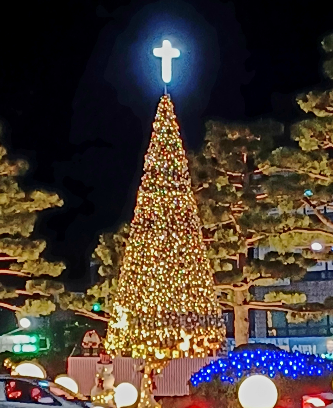 군산에 올랐다 내려와 중앙로터리에 닿으니 성탄 트리 점등식을 하고 있었다.