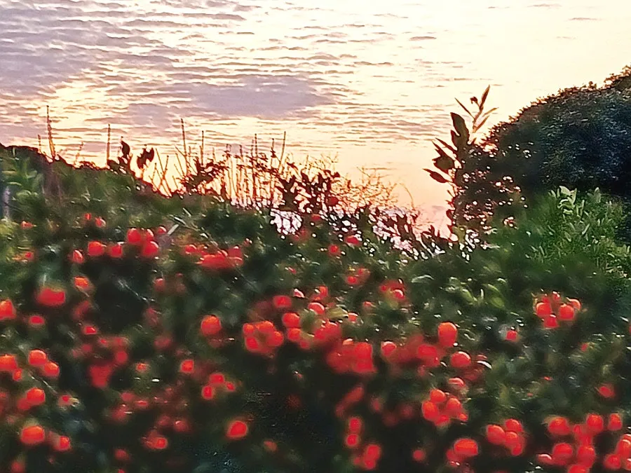 멀리 보이는 한라산 어름에 노을빛 어릴 무렵, 위미마을을 떠났다.