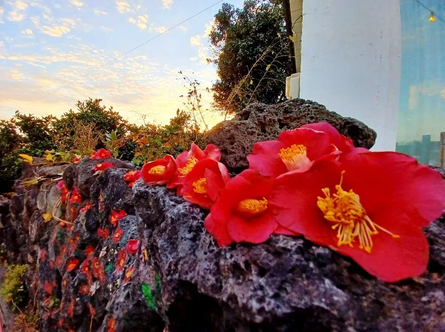동백 군락지에서 낙화 진 붉은 꽃잎 완상하며 별천지에서 노닐던 중이었으니까.