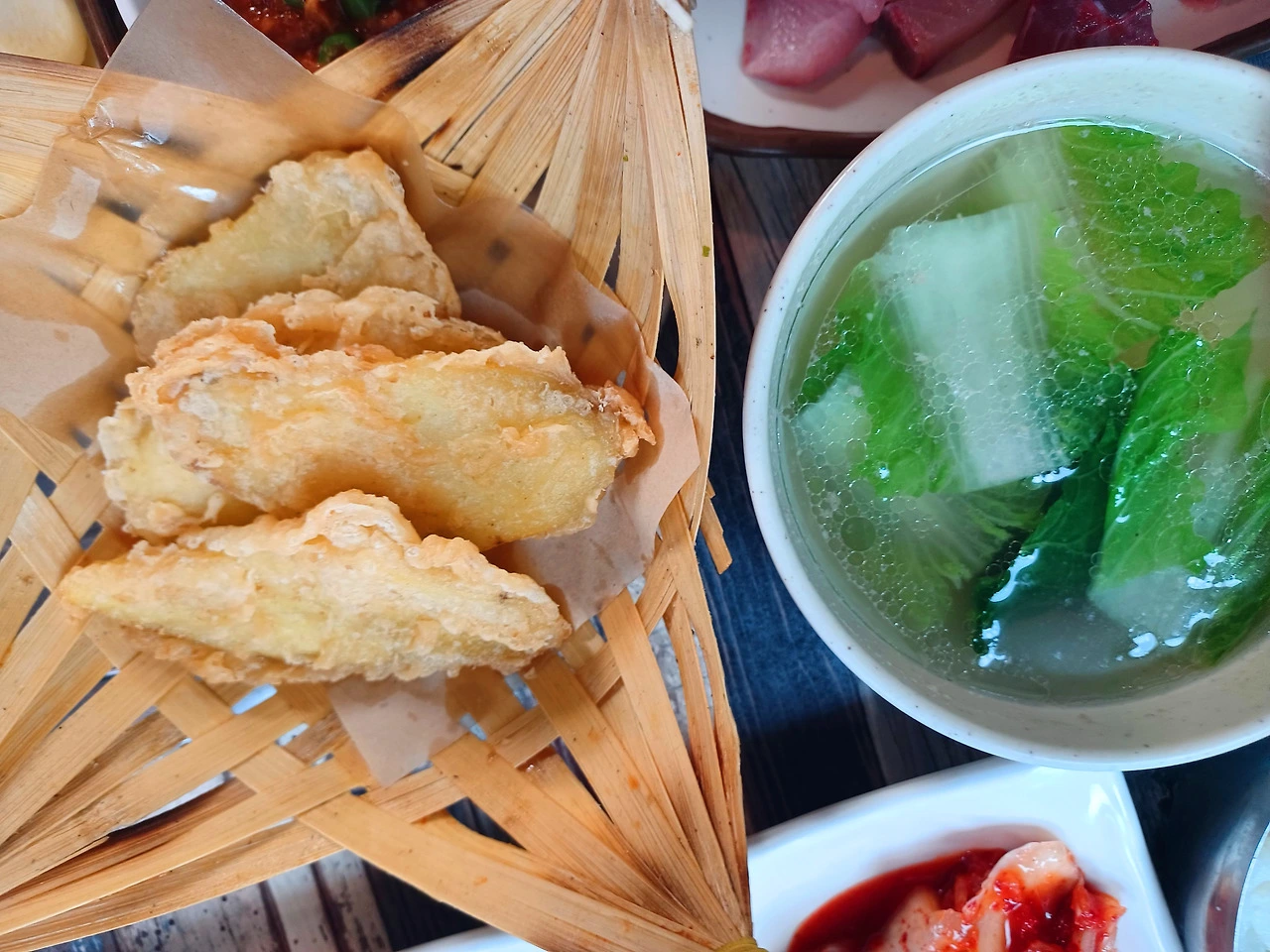 지리탕도 떠먹고 갈치조림도 발라먹고 고구마튀김도 아삭 씹어본다.