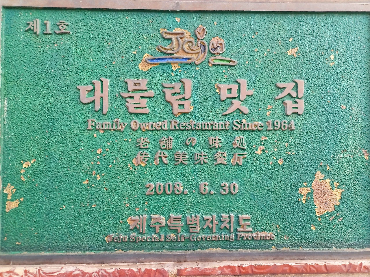 잘 먹었다고 인사하고 나와서 간판을 찍는데 그 아래쪽에 대물림 맛집 1호 인증판이 붙어있다.