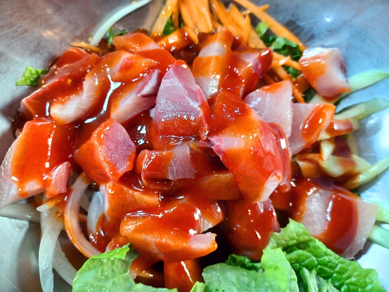 흔히 밥에 회무침을 곁들이는데 완전 별도다.