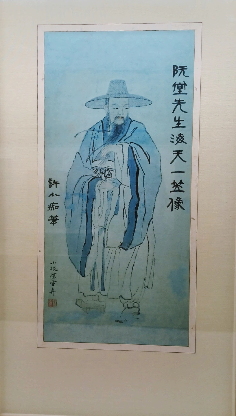 족자로 꾸민 추사선생 필체/추사 김정희 문하에서 글씨를 배운 소치 허련이 그린 초상화/선생이 남긴 비문의 탁본