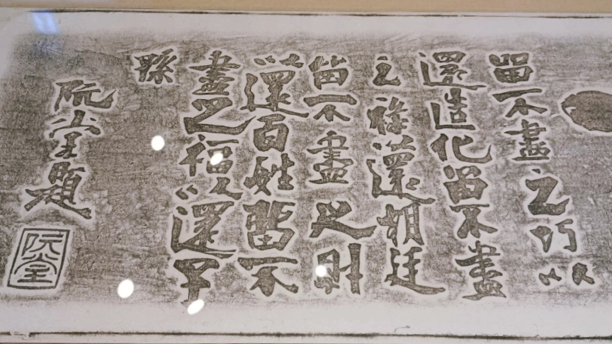 행서체로 쓴 홍도촌사 탁본은 서로를 그리는 집이란 뜻, 창문으로 비치는 작은 빛이 나로 하여금 오래 머물게 한다는 의미의 소창다명사아구좌,