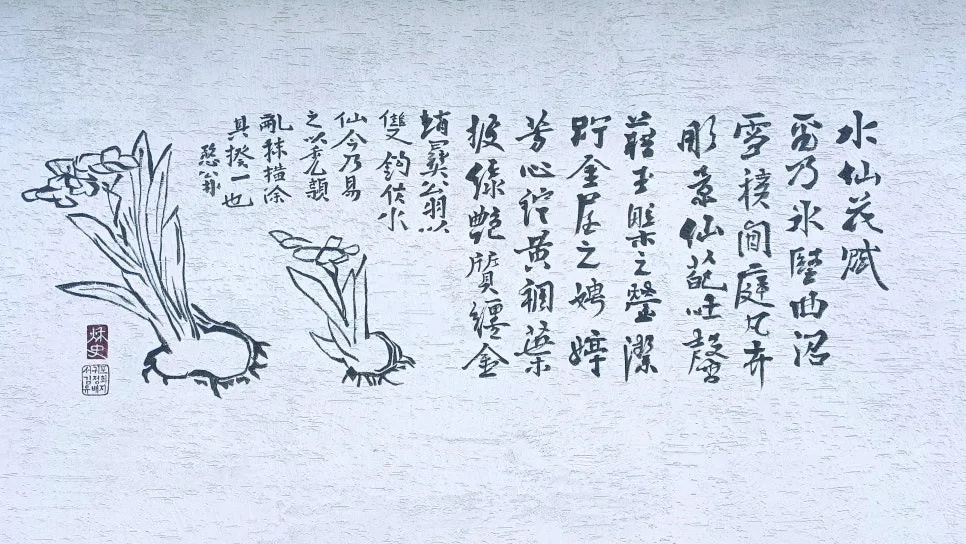 처음 추사 유배지에 왔을 때 적소 앞집 담벼락에 그려진 수선화부를 보았다.