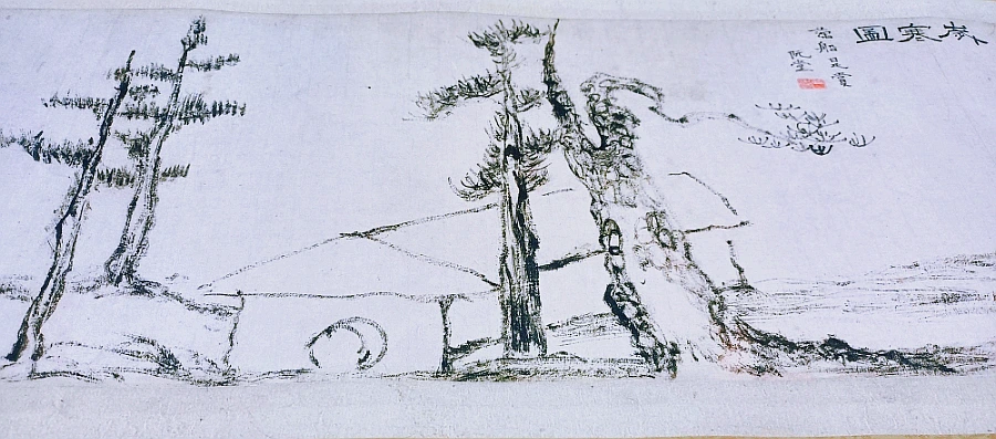 한 겨울이 되어 날씨 추워진 뒤에야 소나무와 측백나무가 쉬이 시들지 않음을 안다는 의미의 그림.