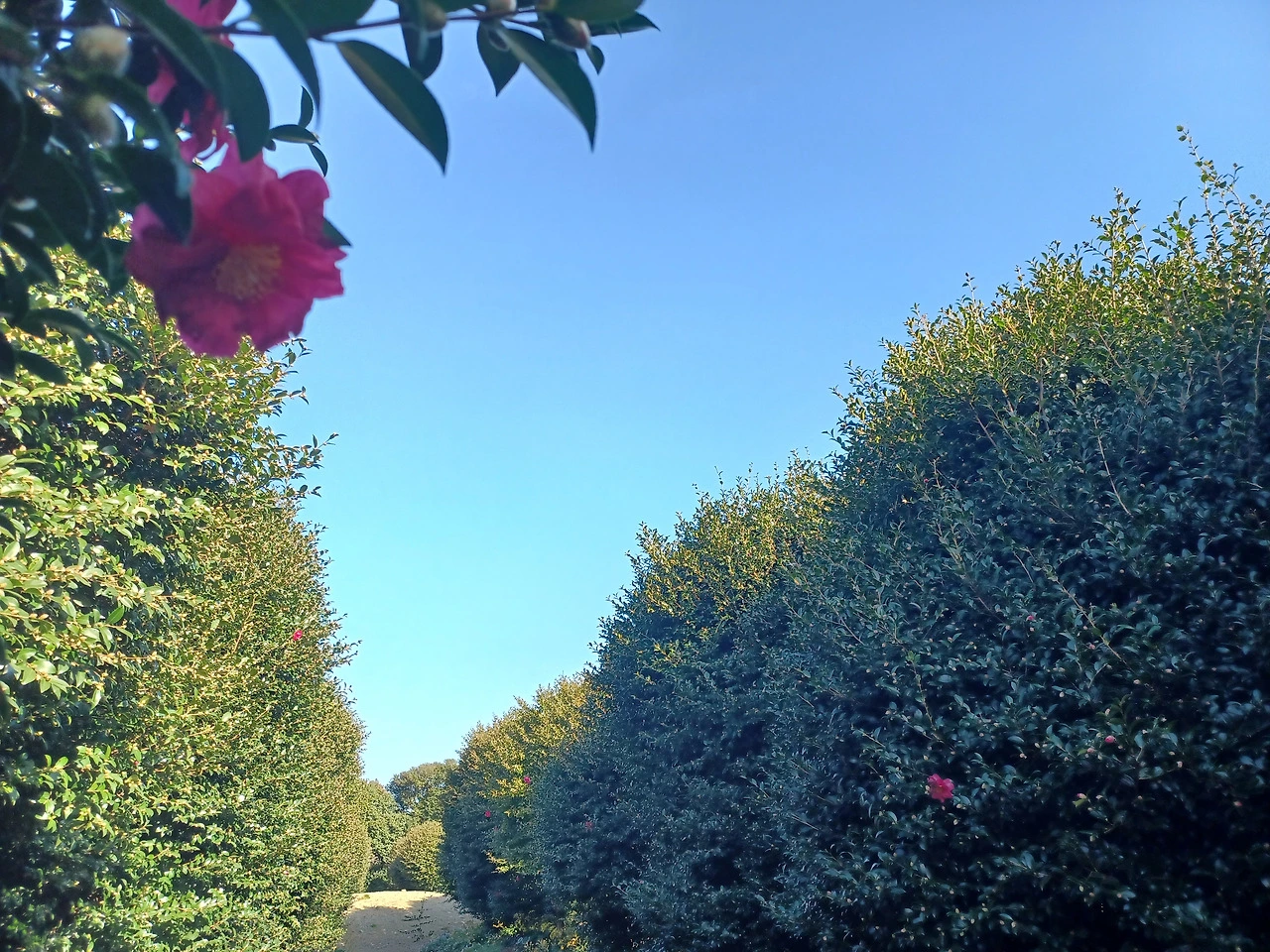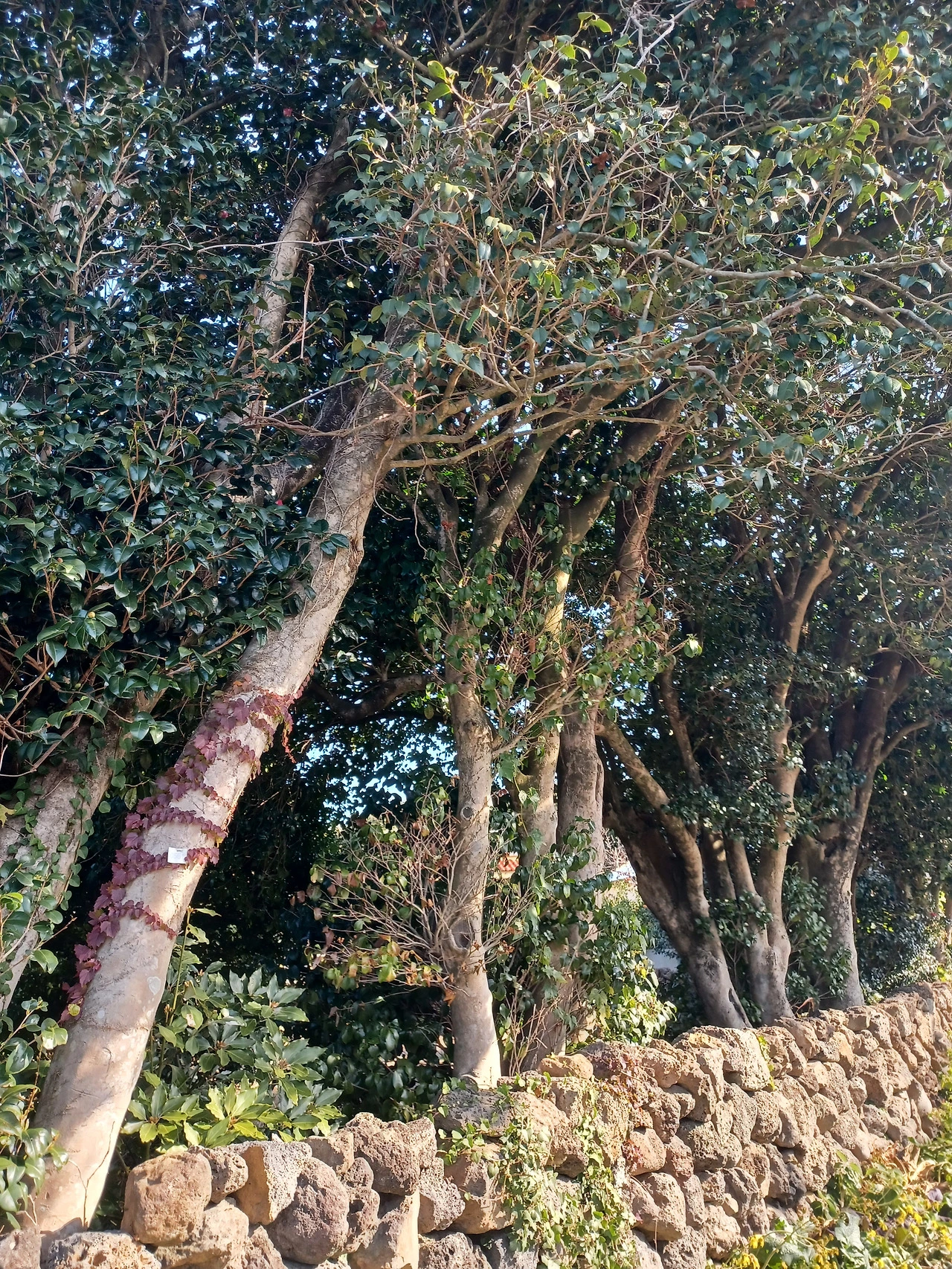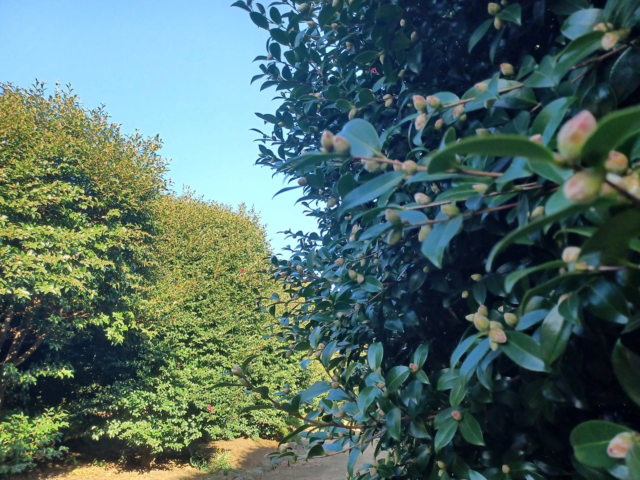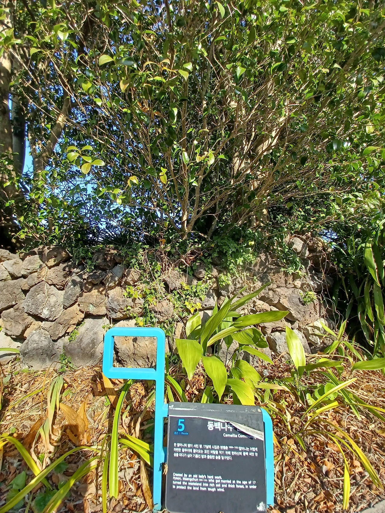 농장길 걸어가며 한눈팔다 보니 막상 동백군락지에 닿았을 때는 충전이 바닥나 폰 작동이 멈춰버렸다.
