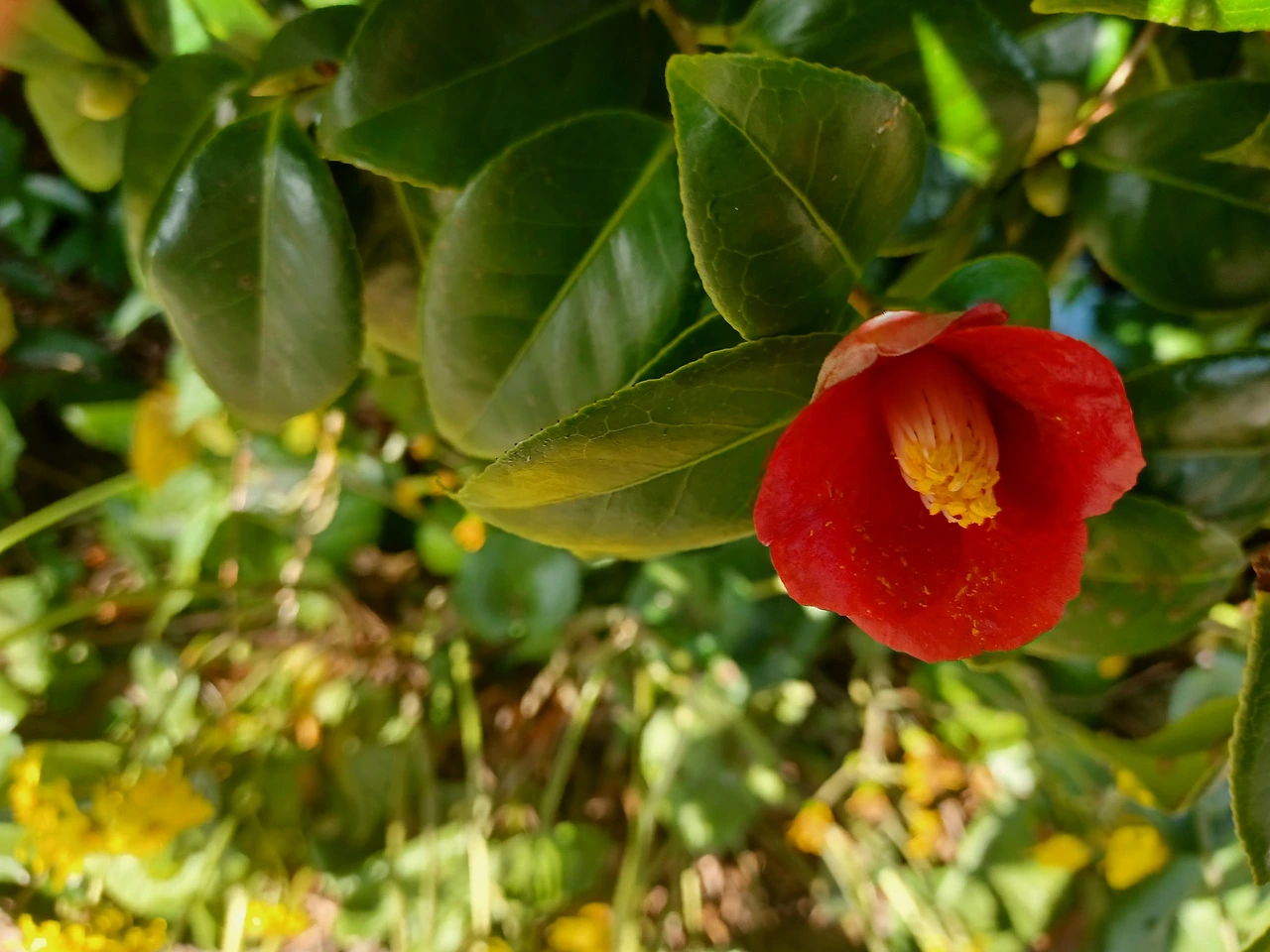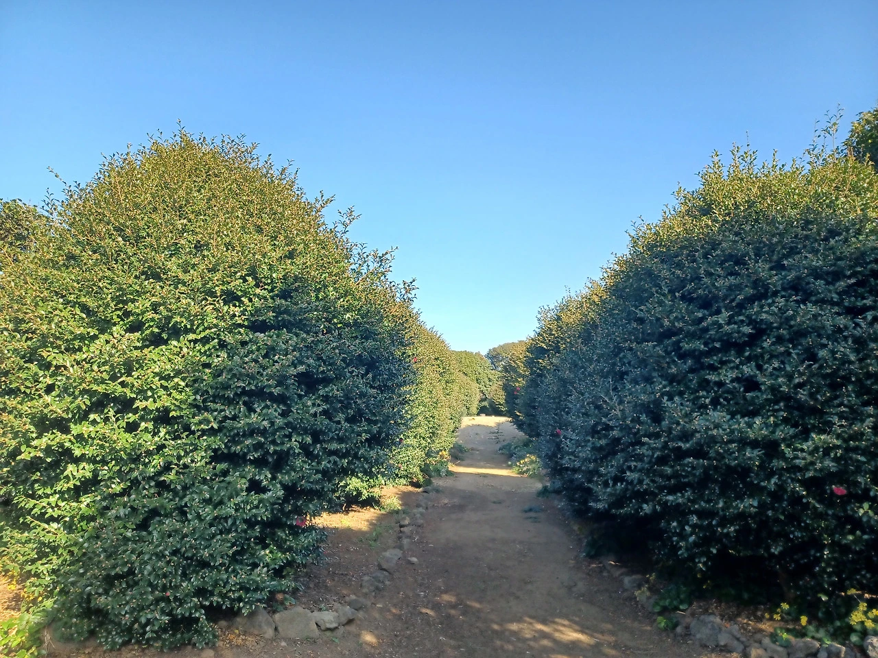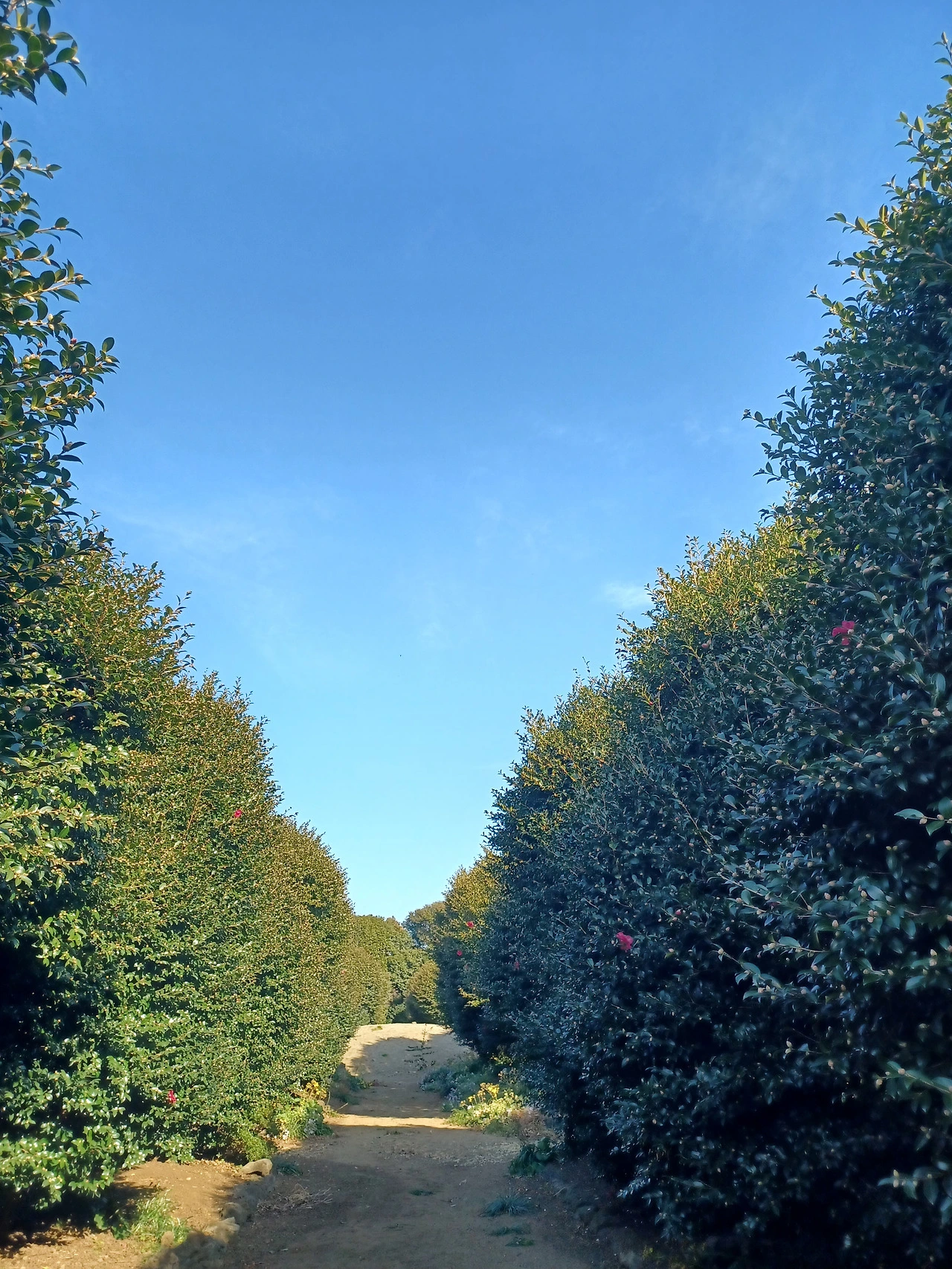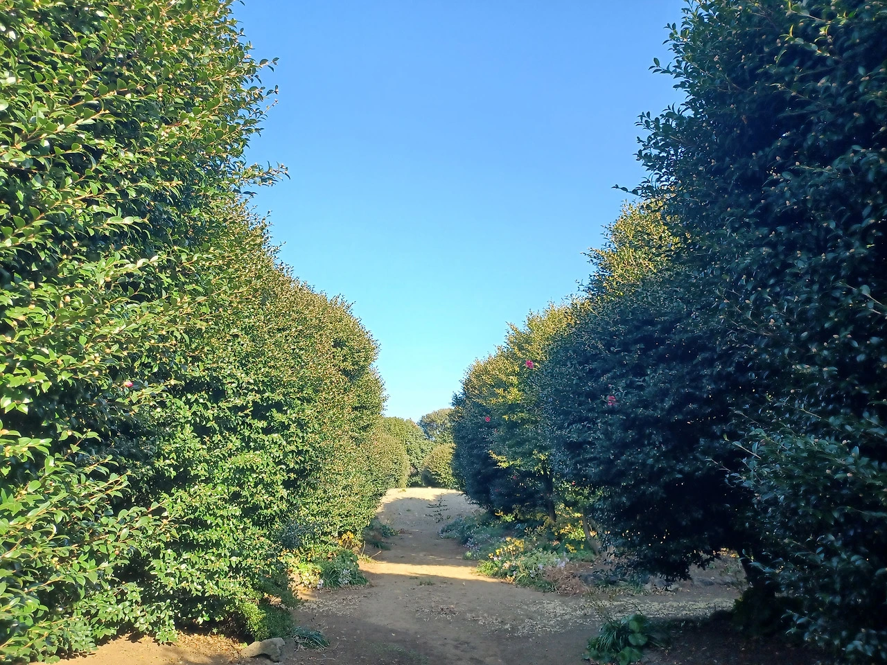 농장길 걸어가며 한눈팔다 보니 막상 동백군락지에 닿았을 때는 충전이 바닥나 폰 작동이 멈춰버렸다.
