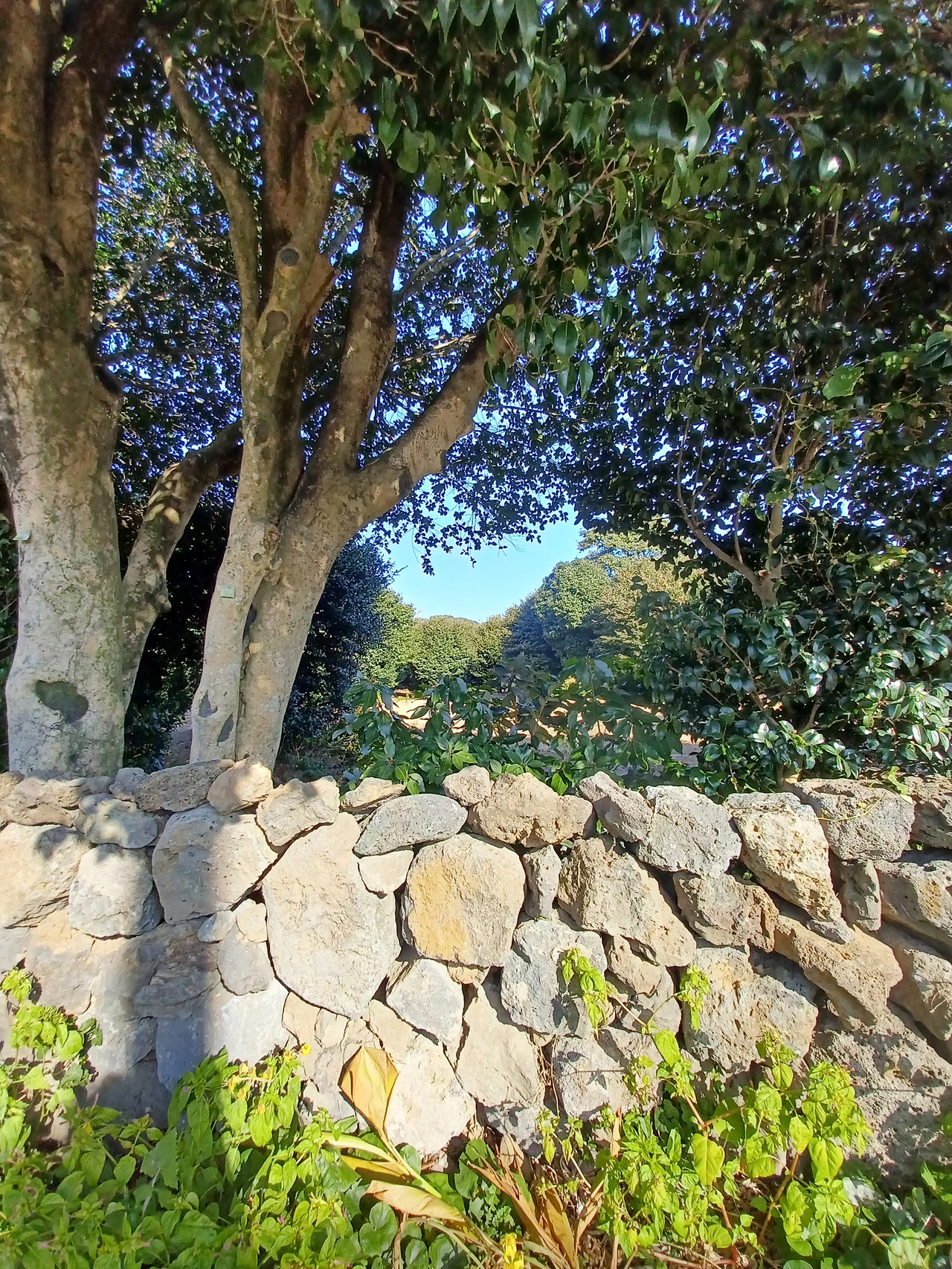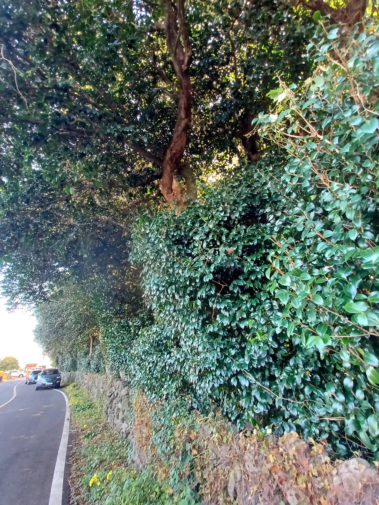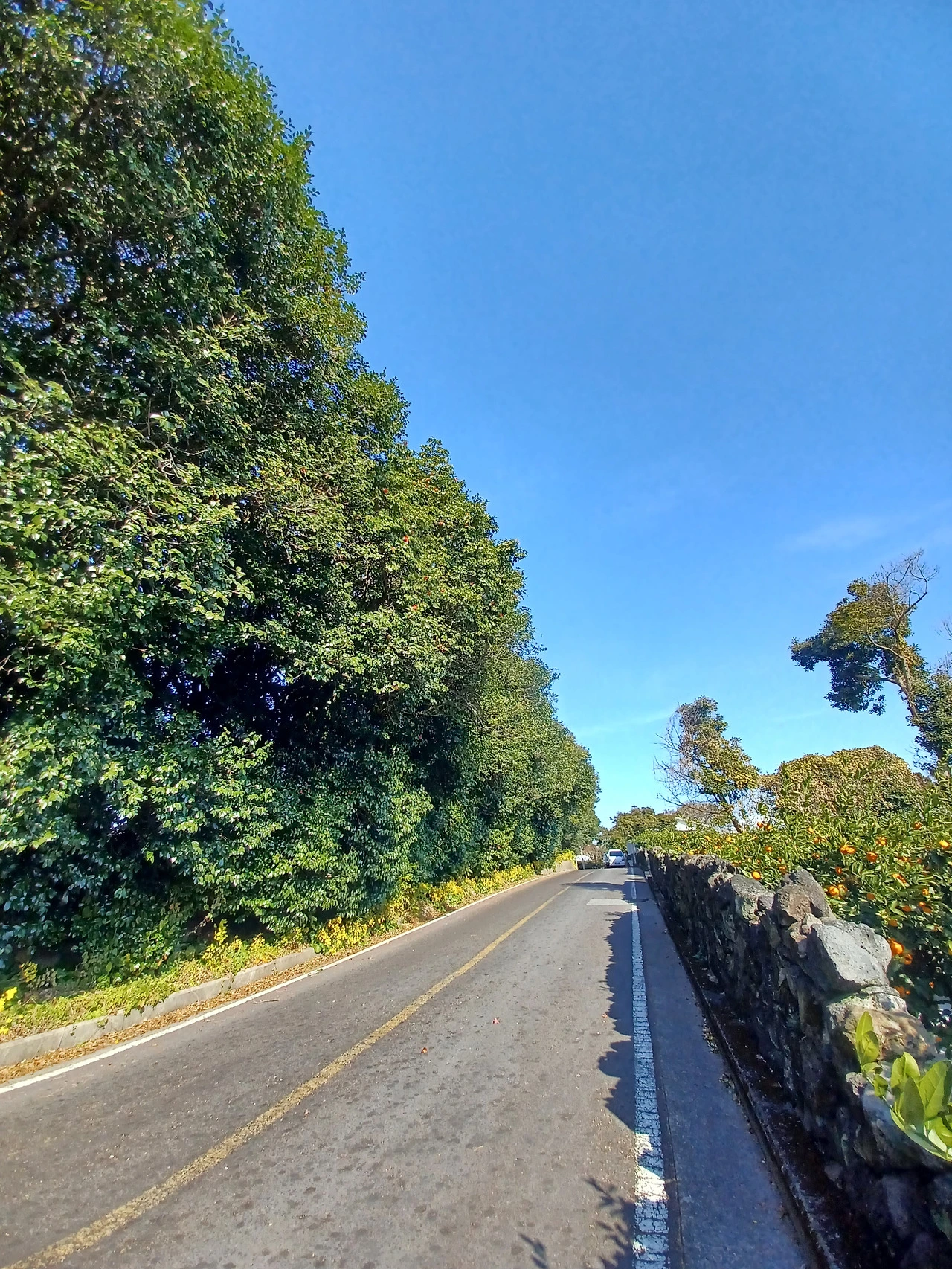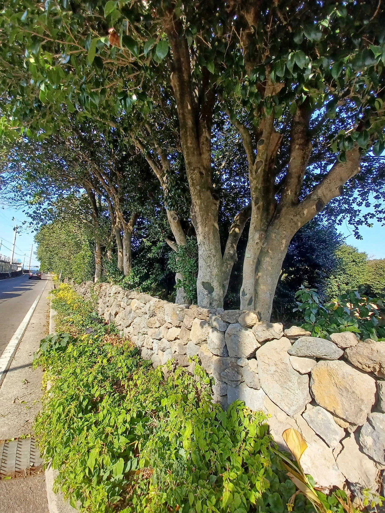 그러다 도로로 나와 돌담길 따라 걷는다.