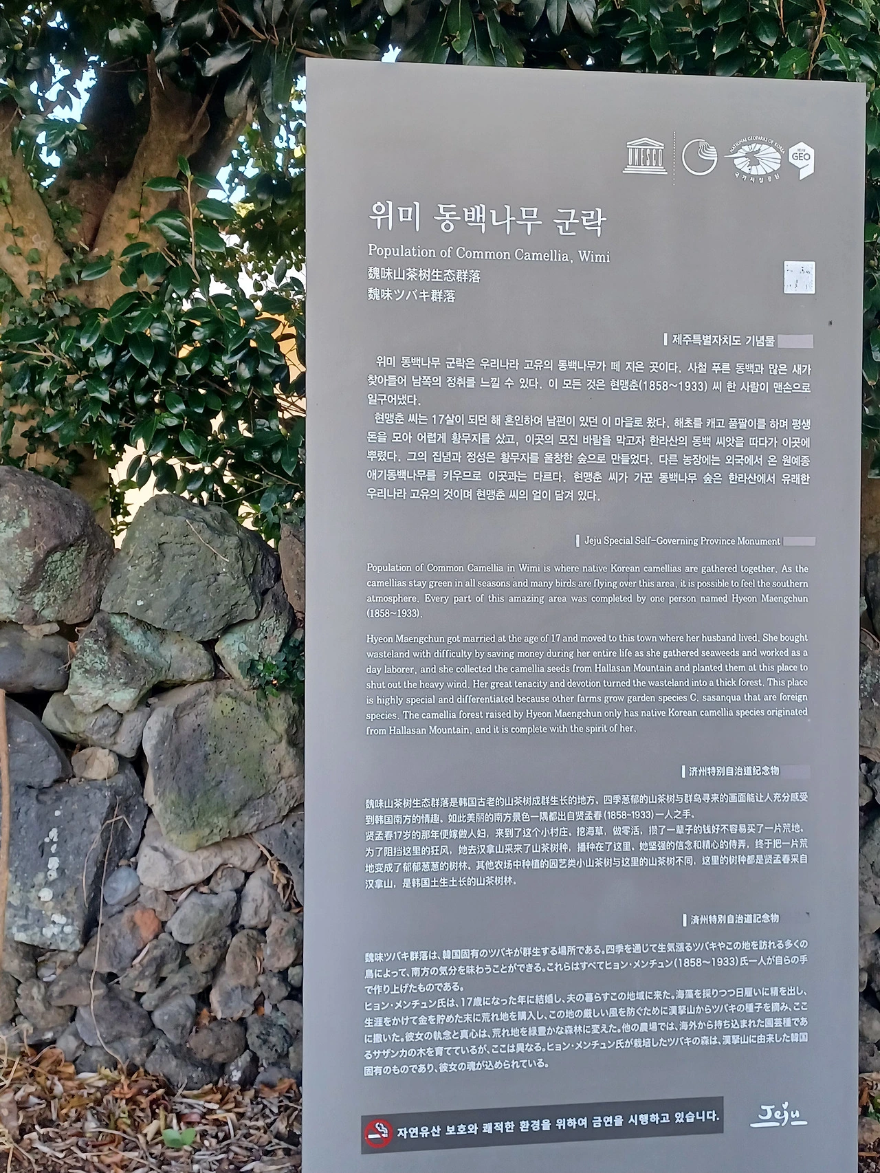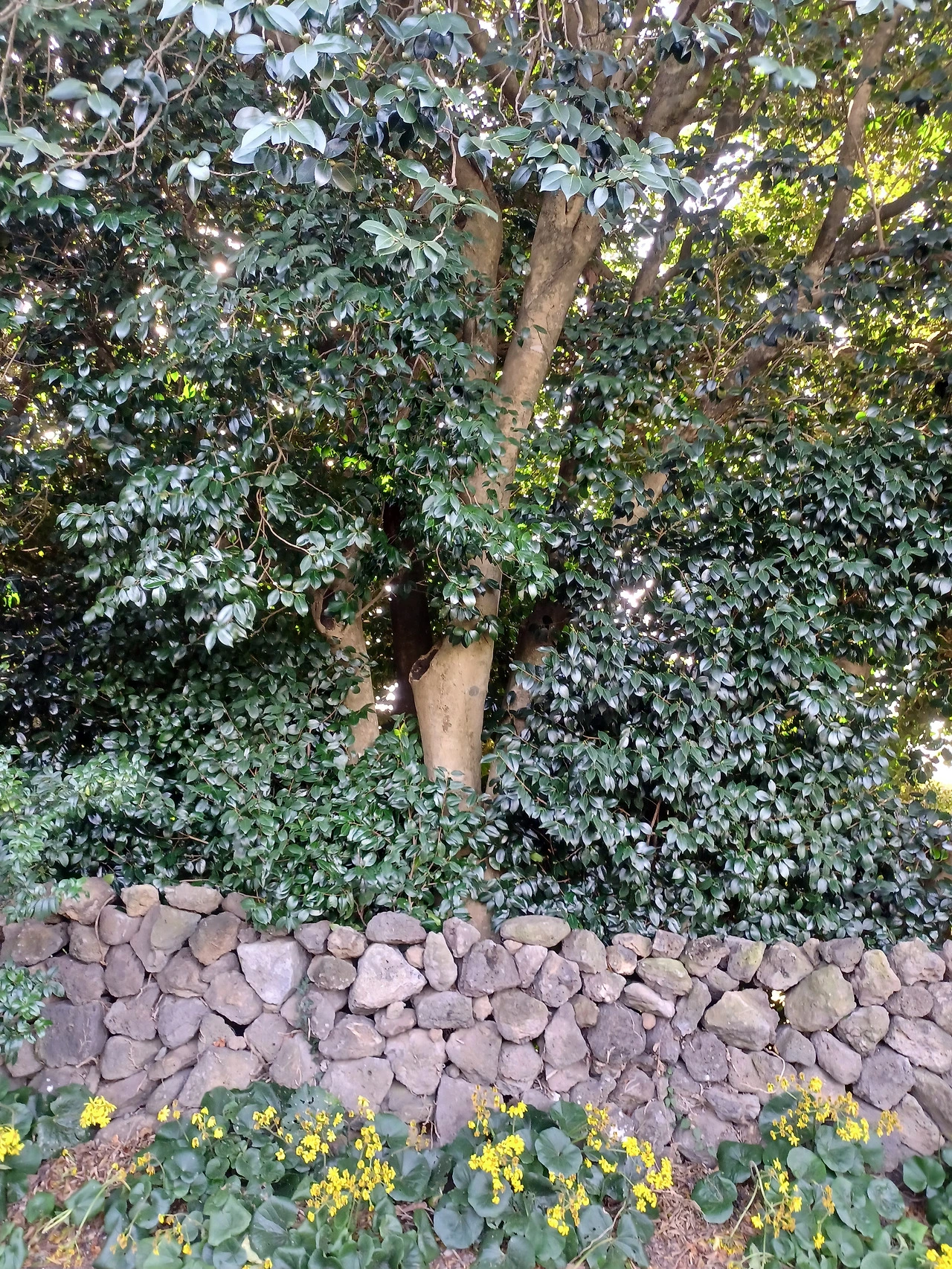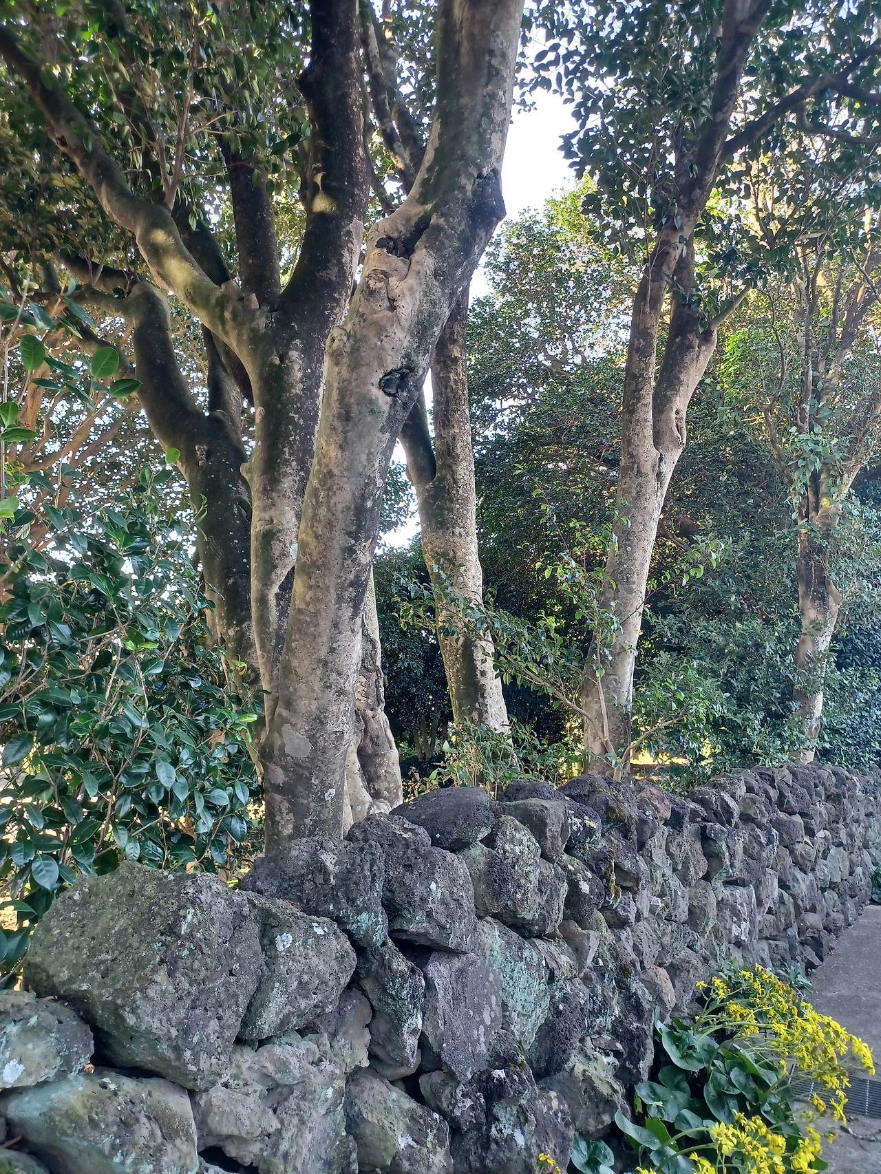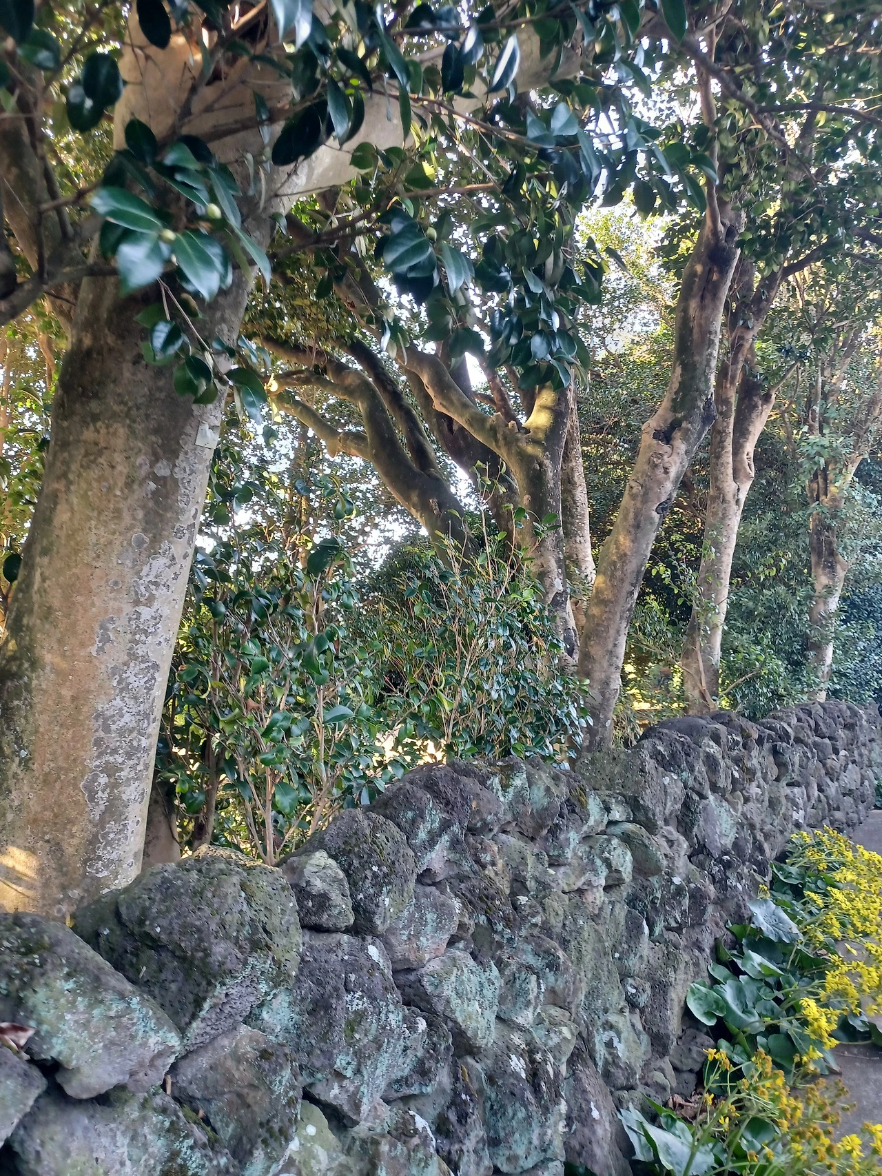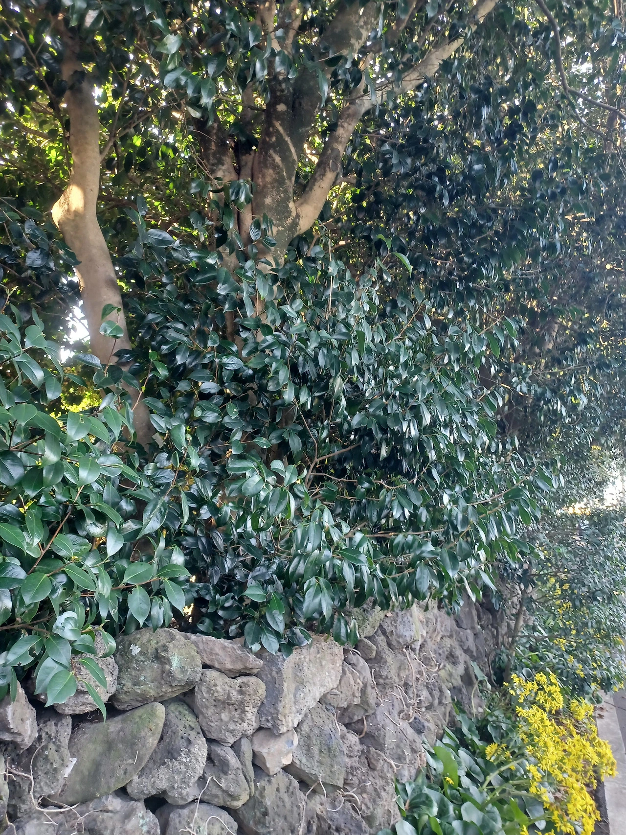 여긴 제주 기념물인 토종동백만이 아니라 돌담 안에 애기동백도 실하게 가꿔놨다.