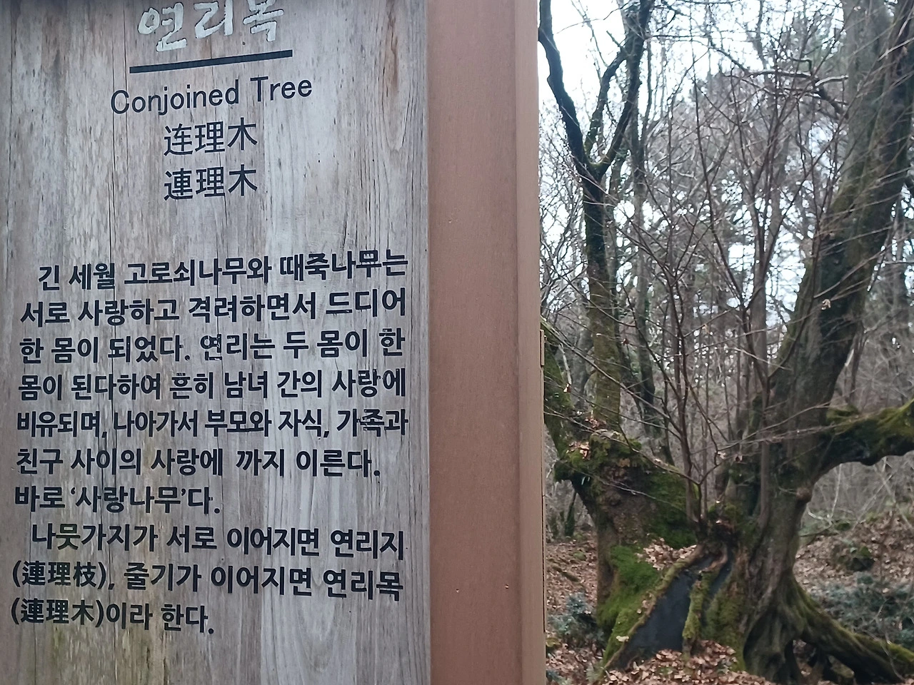 깊은 사랑과 각별한 인연을 상징하는 '사랑나무'인 연리목이다.