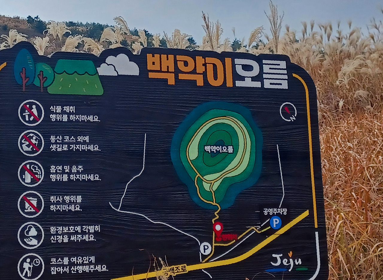 특이하게도 백약이 오름은 들머리와 출구가 한 곳인 원점회귀 코스다.