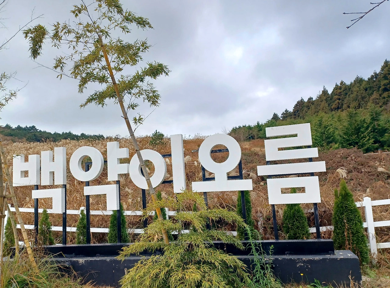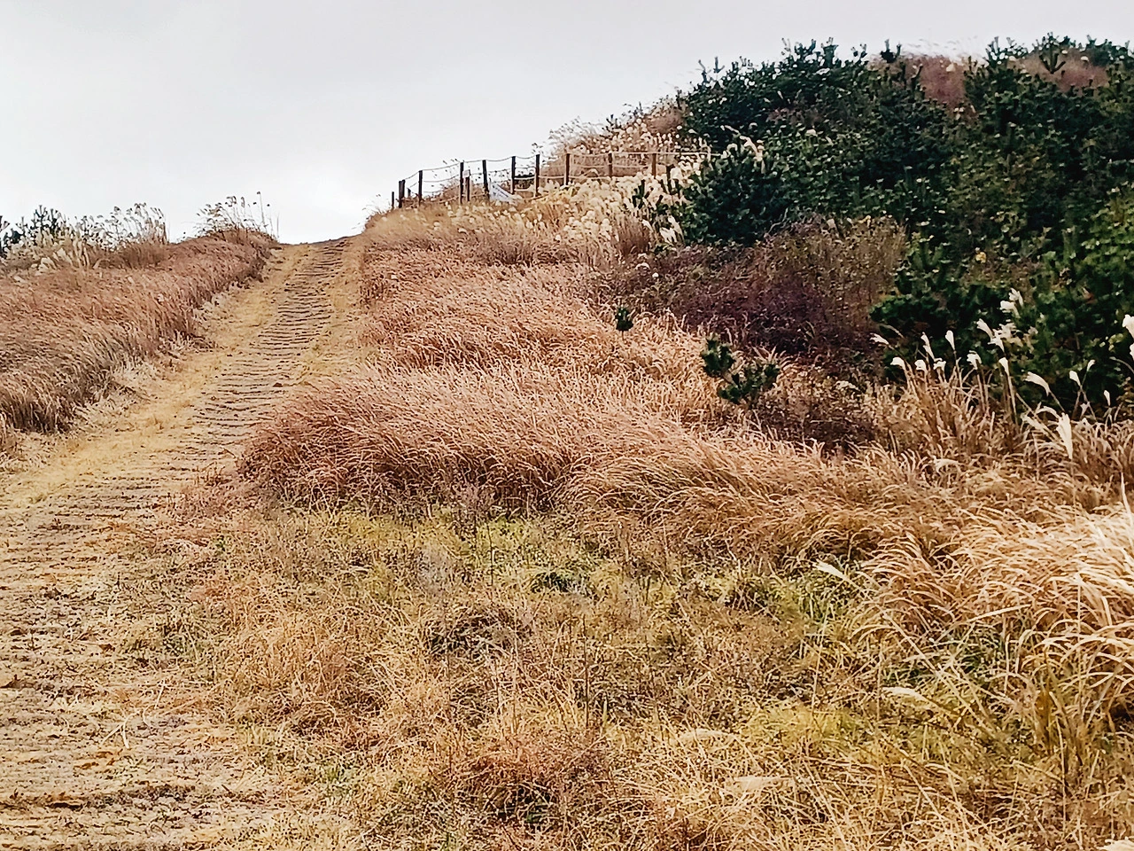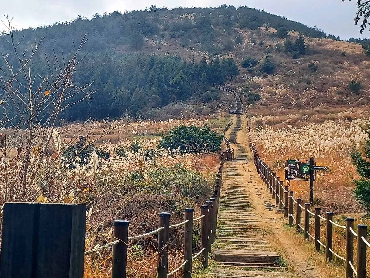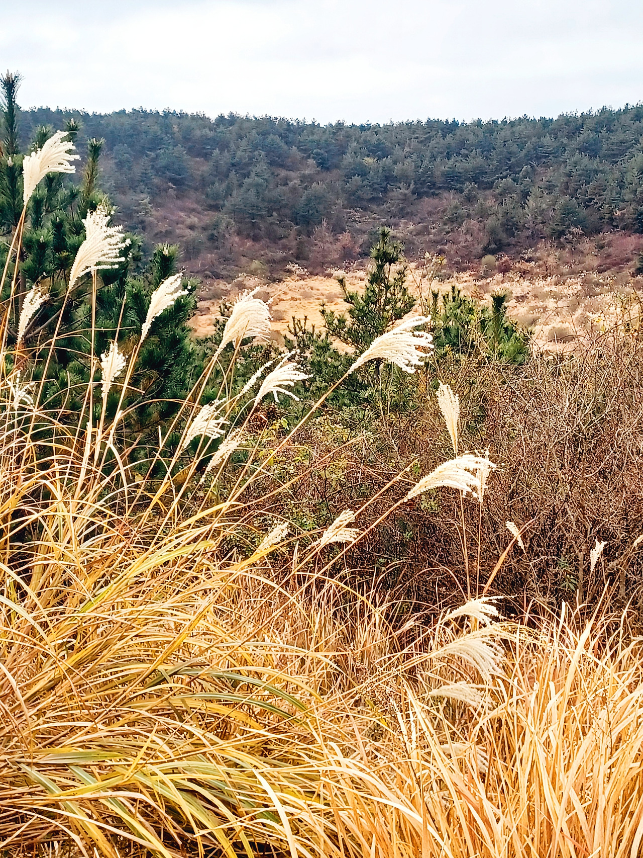 둥근 분화구 안에는 초피, 방아풀, 떡쑥, 고비, 참마, 복분자, 청미래덩굴, 하눌타리, 층층이꽃, 향유 같은 약초가 자라며 가을부터는 억새가 볼만하단다.