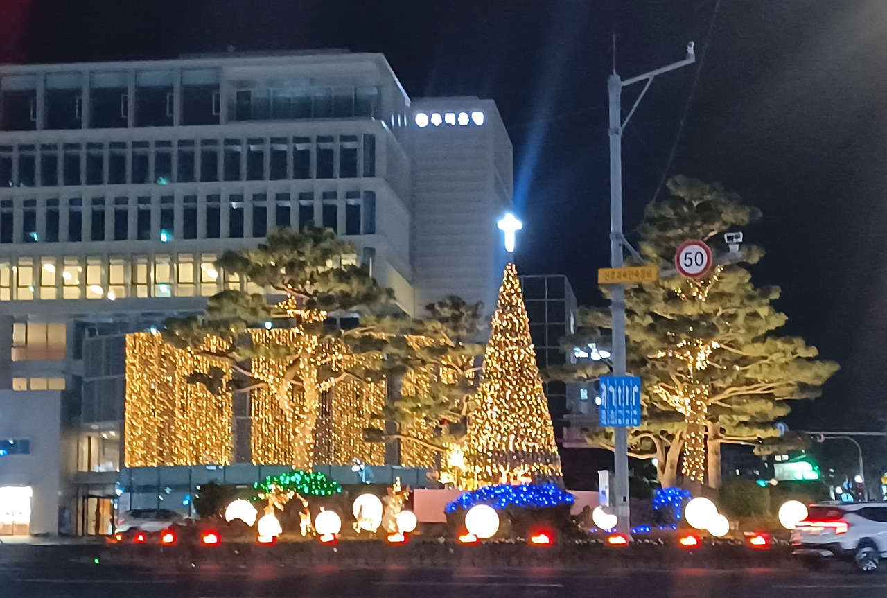 서귀포 중앙로터리 앞엔 크리스마스트리만 덩그렇다.