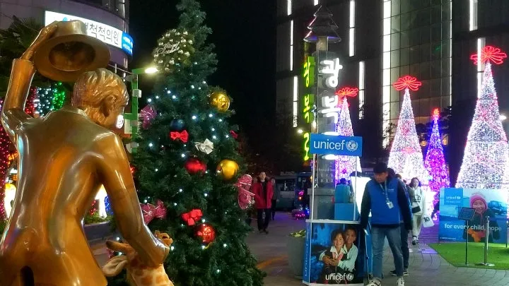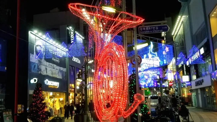 바로 지난해인 2019년 12월 광복동 트리문화축제가 열린 거리 풍경은 이처럼 화려했다.