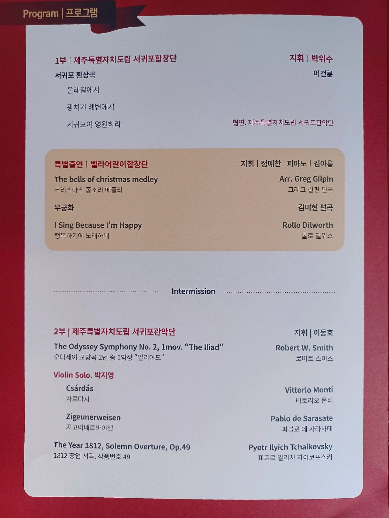 제주도립 서귀포관현악단과 합창단의 앙상블로 두 차례나 귀 호강을 했다.