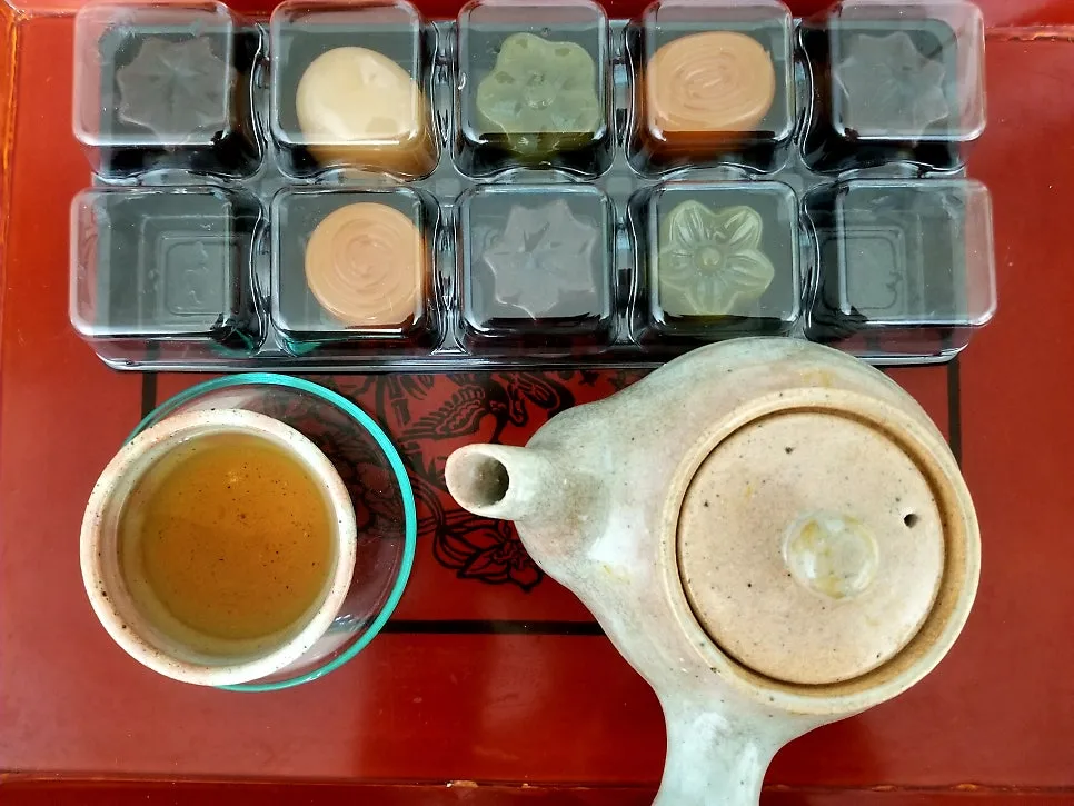 이민을 갔다가 여섯 해 만에 잠시 한국에 다니러 왔던 오래전. 공항에서 아들은 눈가가 붉어졌다. 원래도 수척했지만 바싹 마른 엄마가 속상해서였으리라. 집에 와보니 내 방 머리맡에 요깡과 웨하스가 한 보따리 기다리고 있었다. 말 안 해도 알 만했다. 평소 내가 즐겨온 군것질거리였기 때문이다. 용케도 기호를 잊지 않았구나 싶어 내심 짜르르 해졌다. 며칠 전 아들이 뜬금없이 선물 포장지에 든 양갱 케이스를 보내왔다. 열어보니 다식판에 찍어낸 흑임자다식이며 송화다식처럼 참한 모양에 색상 은은한 요깡이 얌전스레 들어있었다. 뜬금없는 게 아닌 것이, 민속날이면 전통음식 챙기는 줄 알기에 동지 즈음 팥양갱을 일부러 사보낸 듯. 녹차양갱은 녹차를 곁들이면 딱이겠다.