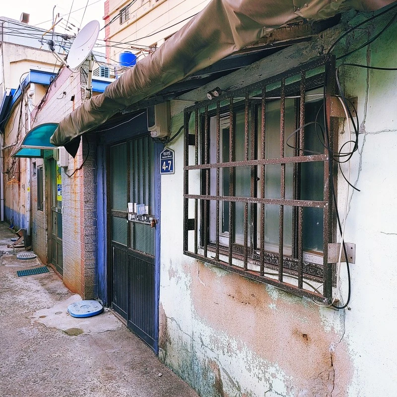 온데 벌겋게 슨 녹이 드러나고 페인트 냄새 서려있는 마을, 납작한 채로 낡아빠진 골목을 돌아보는 내내 마음 묵지그레해졌다.