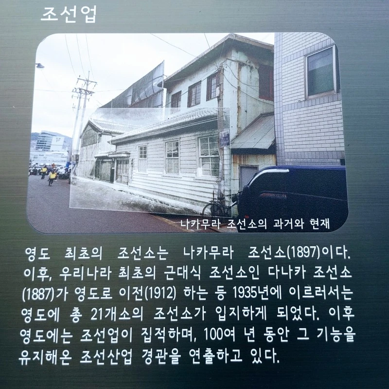 일제 강점기인 1912년 우리나라 최초의 근대식 선박을 만든 다나카 조선소가 이곳에 들어서며 마을은 크게 번성했다.