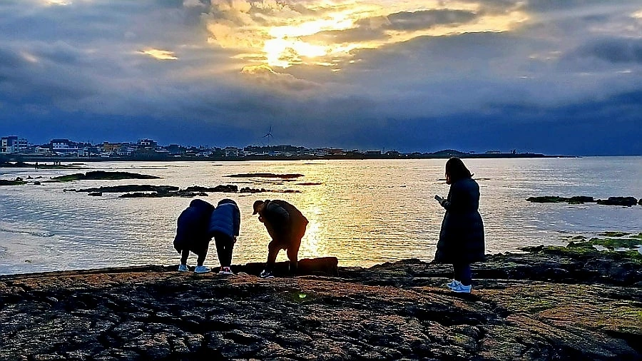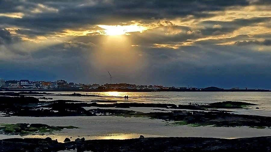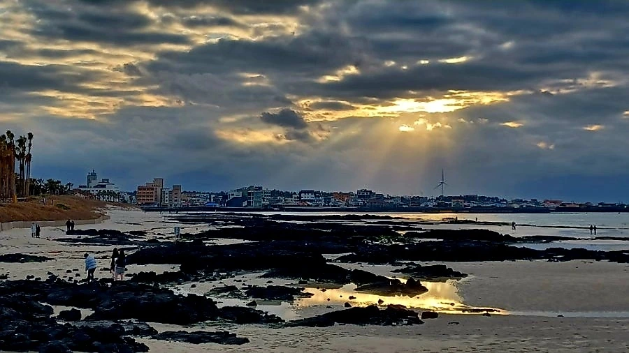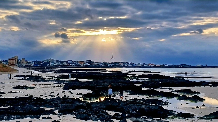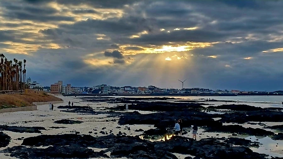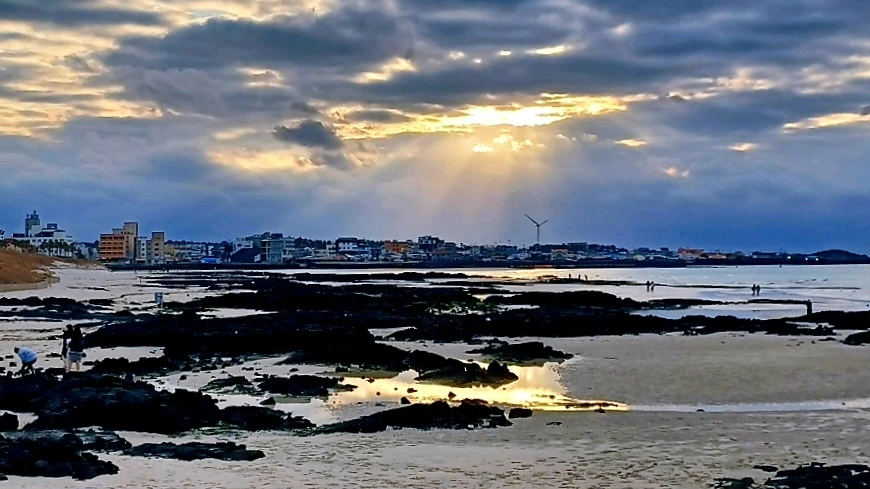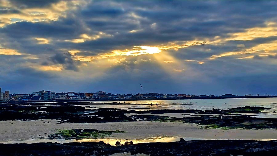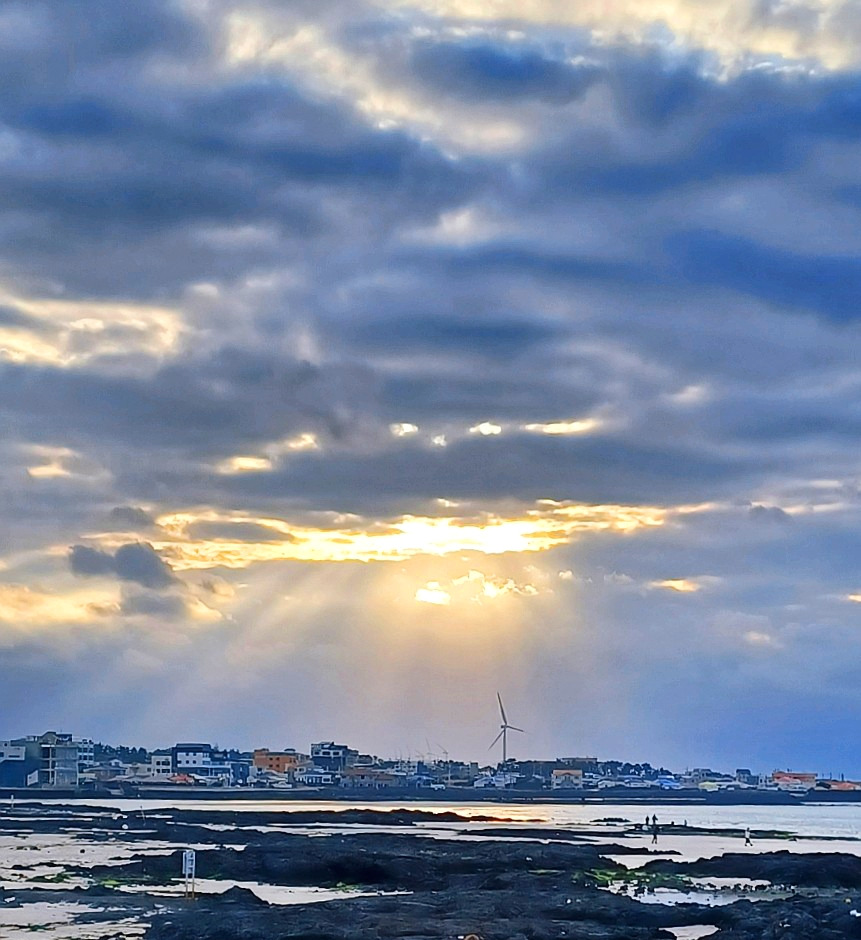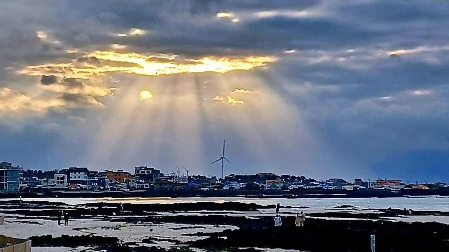 구름 낀 오후, 금능 해변을 무대로 펼쳐진 경이로운 빛의 조화와 이날 마주했다.